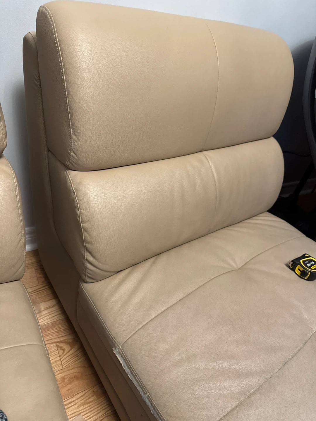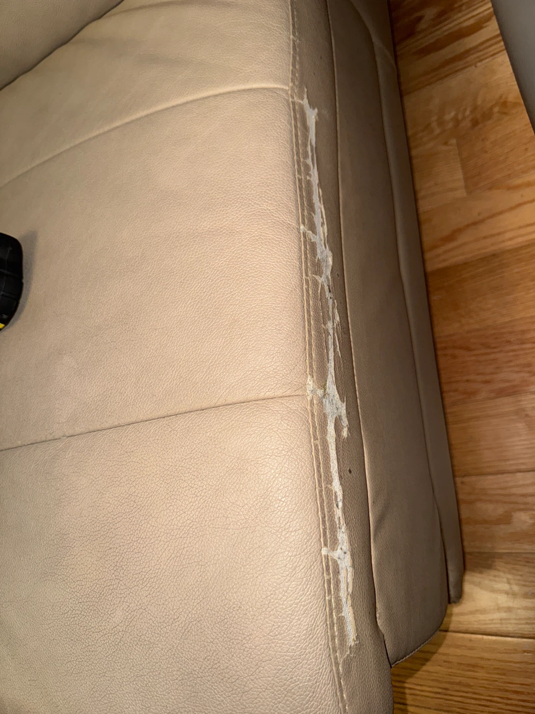 It's in good condition but from the photo the seat area is already peeling. Sides are peeling as well but the backrest is in great condition. Length is about 29” to 29.5” and width is about 39”. Width of seat area is 22.5” and height of the seat is about 16” (not including backrest). Height of backrest is 35”. NEED GONE BY SEPT 24