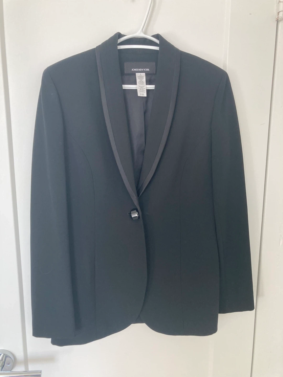 Selling a classic black blazer from Jones New York! It's a size 6 and in great condition. Perfect for dressing up or adding a touch of sophistication to any outfit