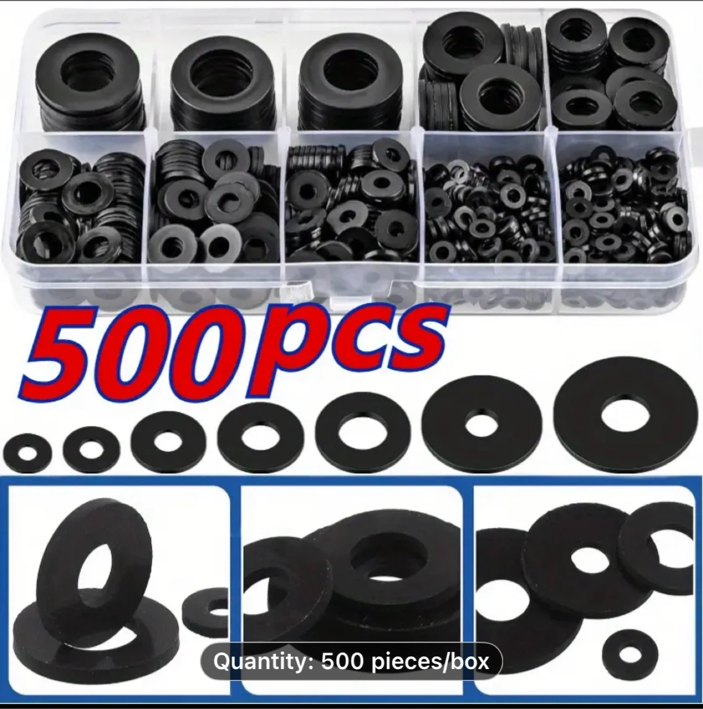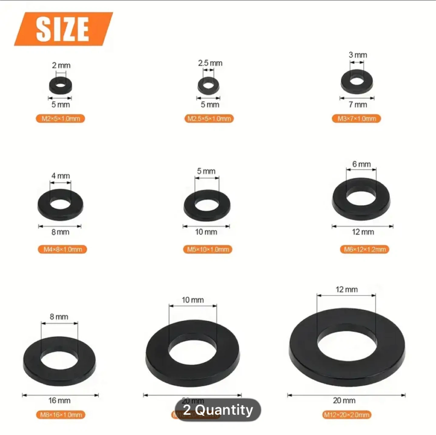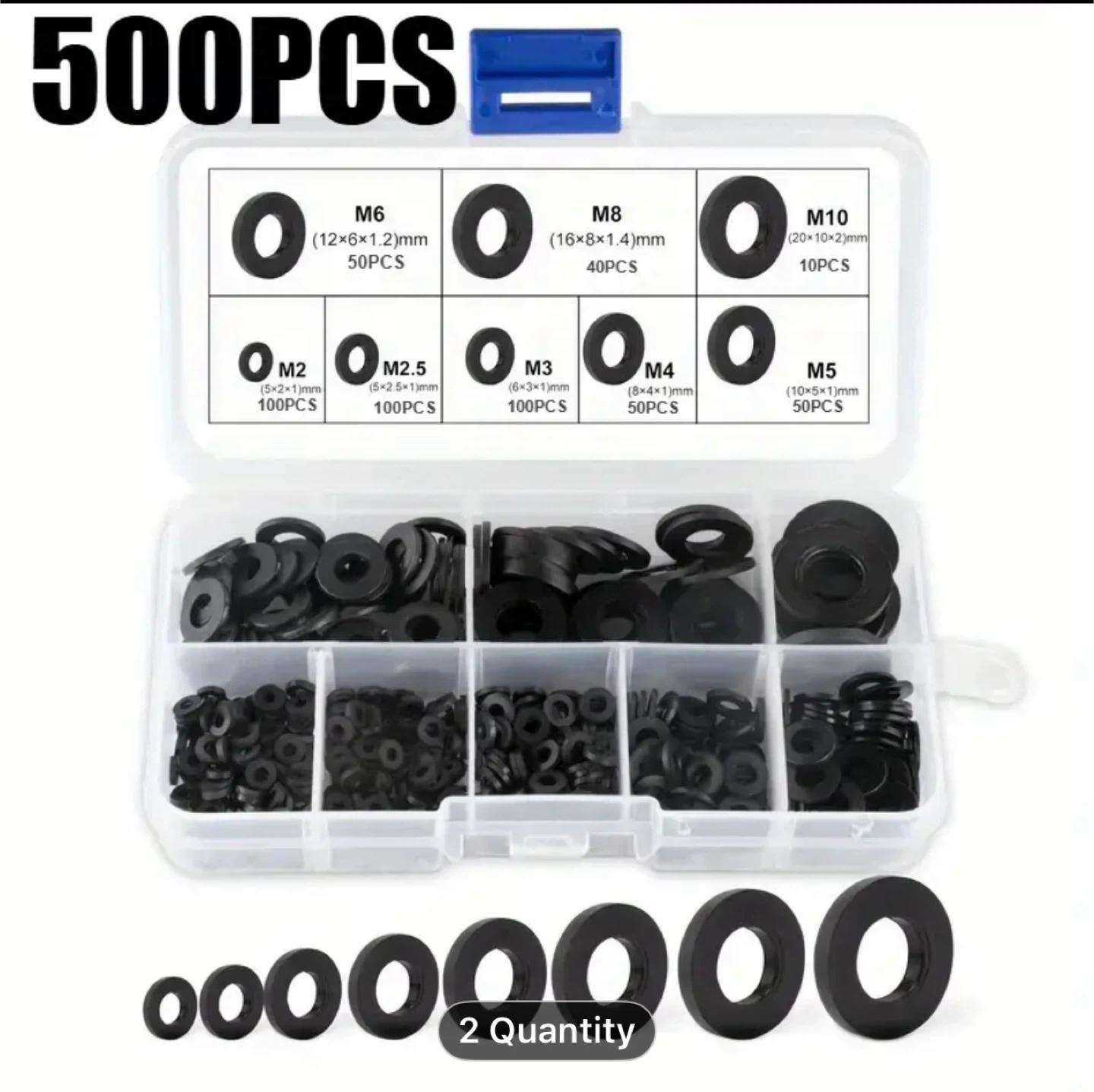 500pcs Black Nylon Washers Set - Durable Flat Round Washers for Bolts and Screws, Self-Tightening Design, M2-M12 Size, Ideal for DIY Projects and Repairs, DIY Washer Set|Selftightening Washers|Nylon Washers, Washer Set