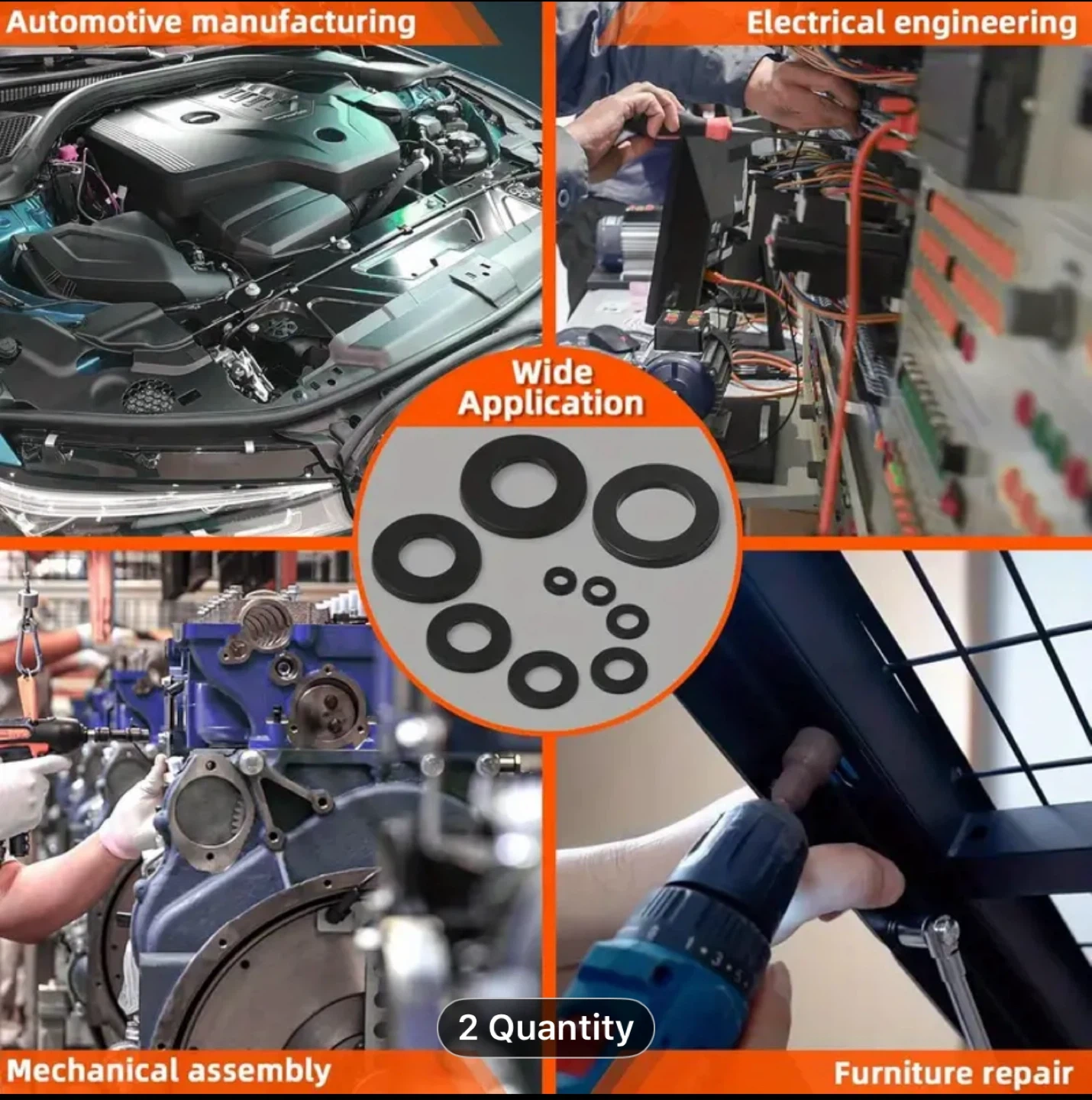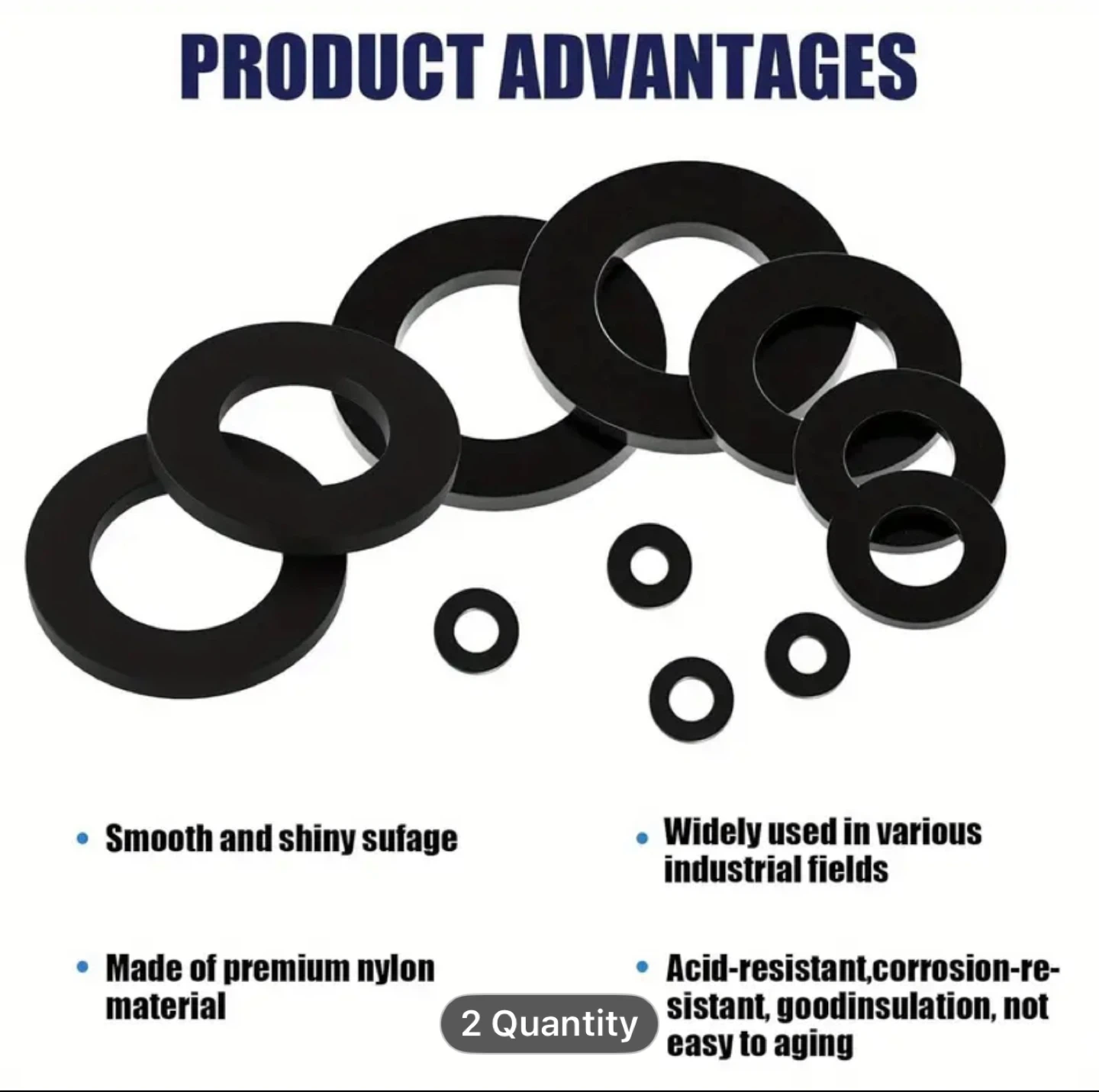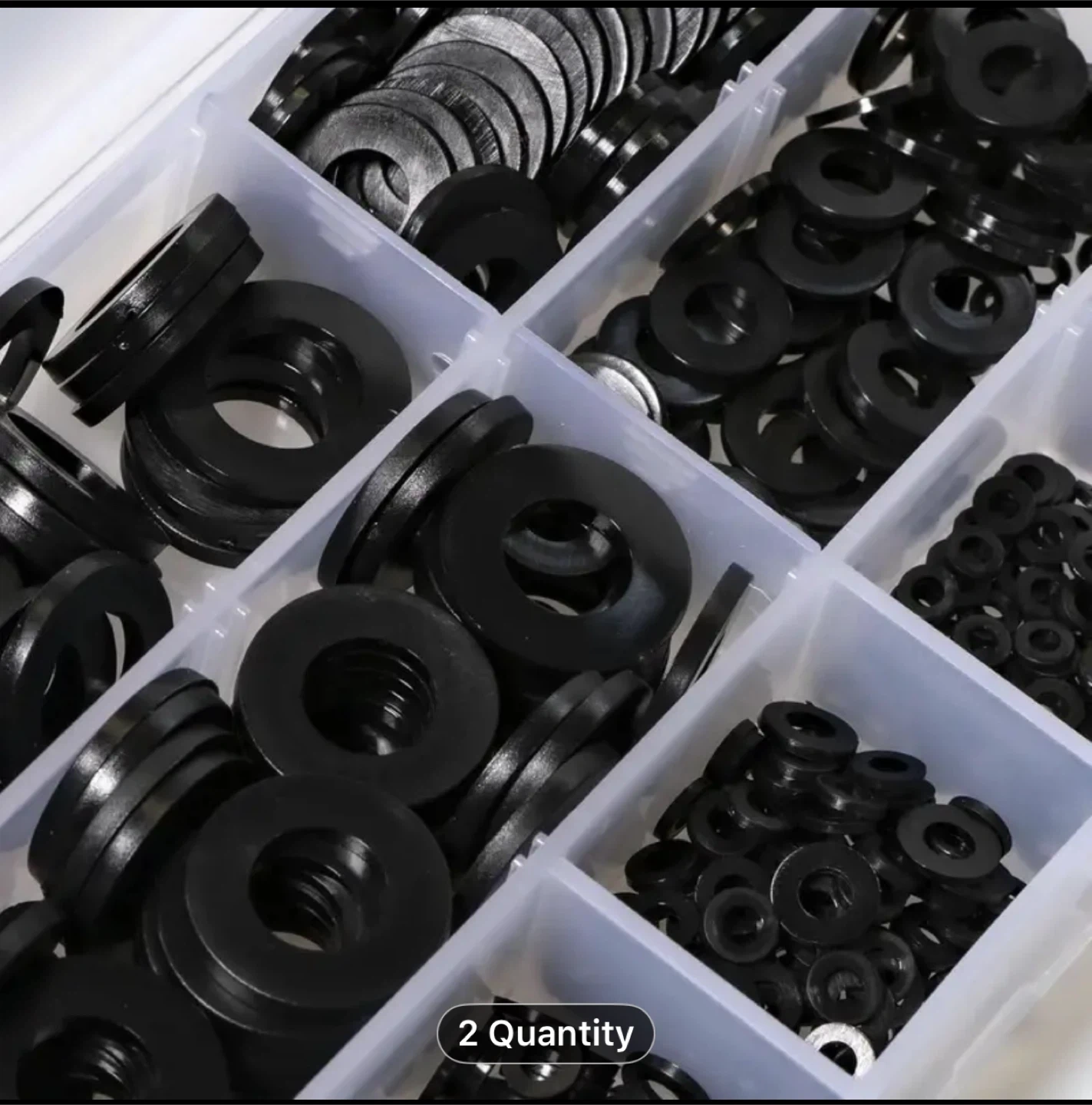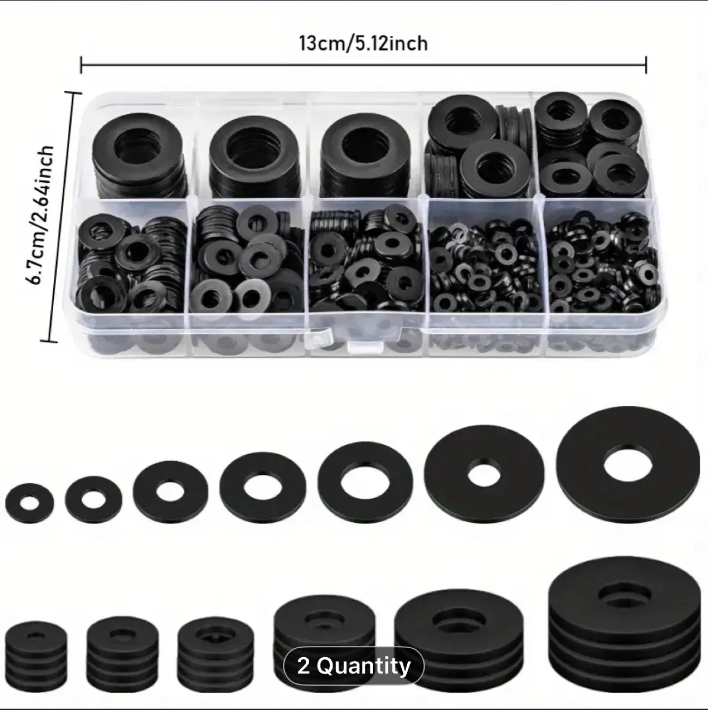 500pcs Black Nylon Washers Set - Durable Flat Round Washers for Bolts and Screws, Self-Tightening Design, M2-M12 Size, Ideal for DIY Projects and Repairs, DIY Washer Set|Selftightening Washers|Nylon Washers, Washer Set