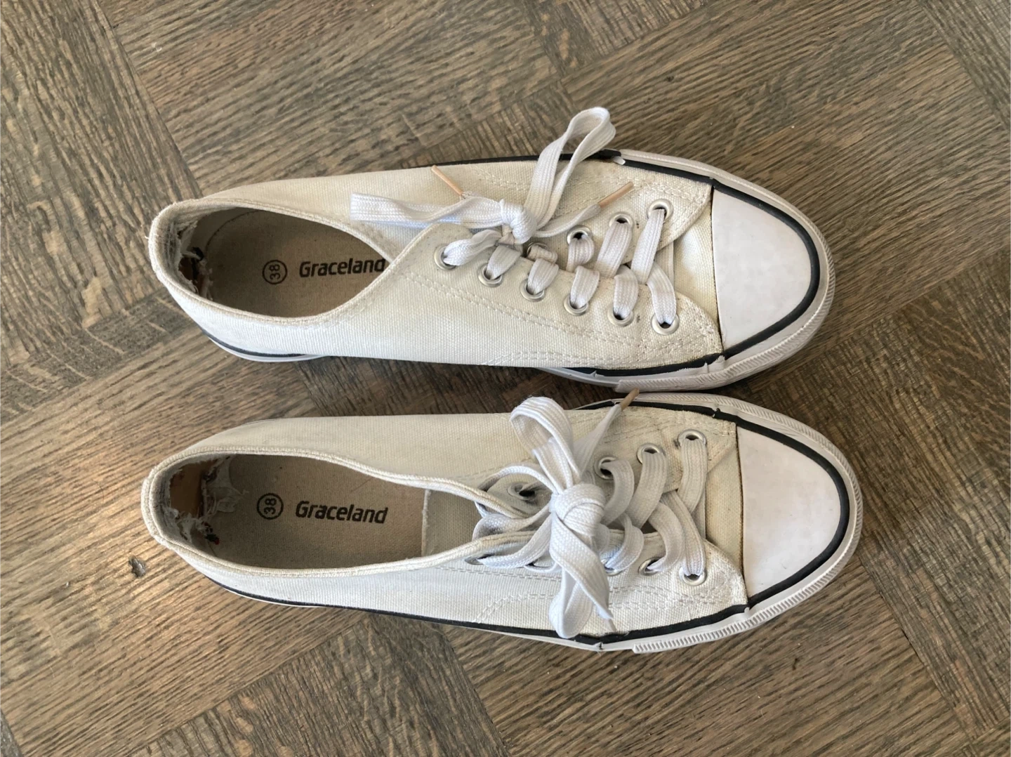 Selling a pair of white canvas sneakers from Graceland. They're a European size 38. Please note they show signs of wear.