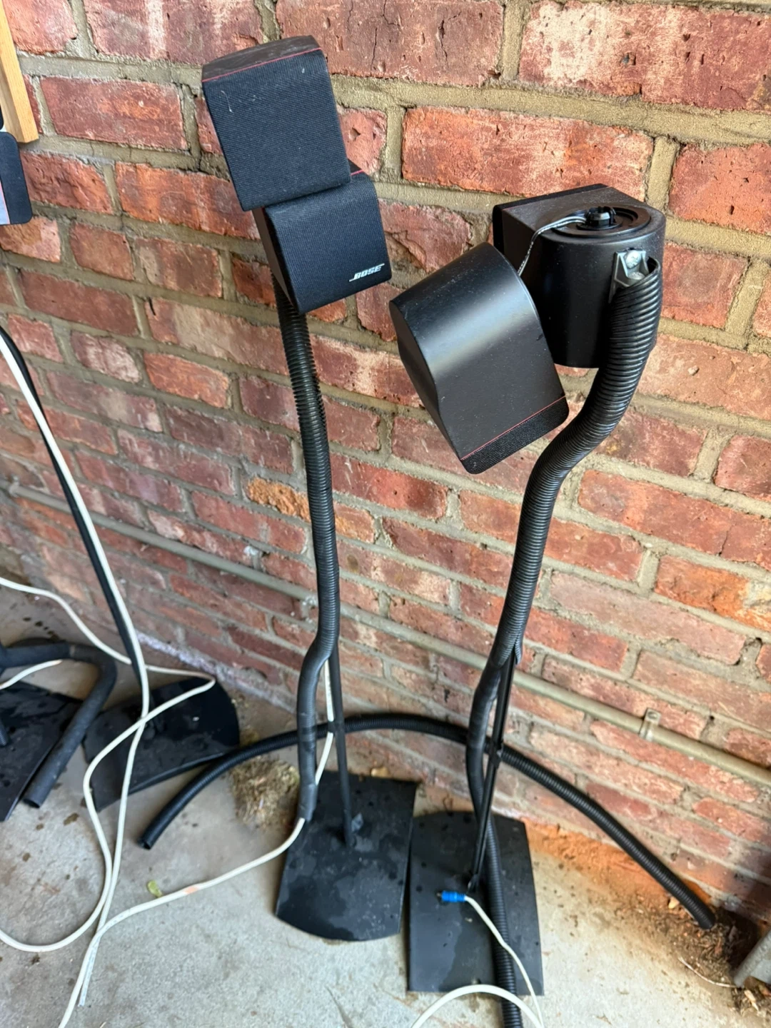 Selling a set of Bose Freespace 51 environmental speakers. These are great for outdoor use and provide excellent sound quality. Sold AS IS INCLUDES a set of 5 speakers and a big sub woofer