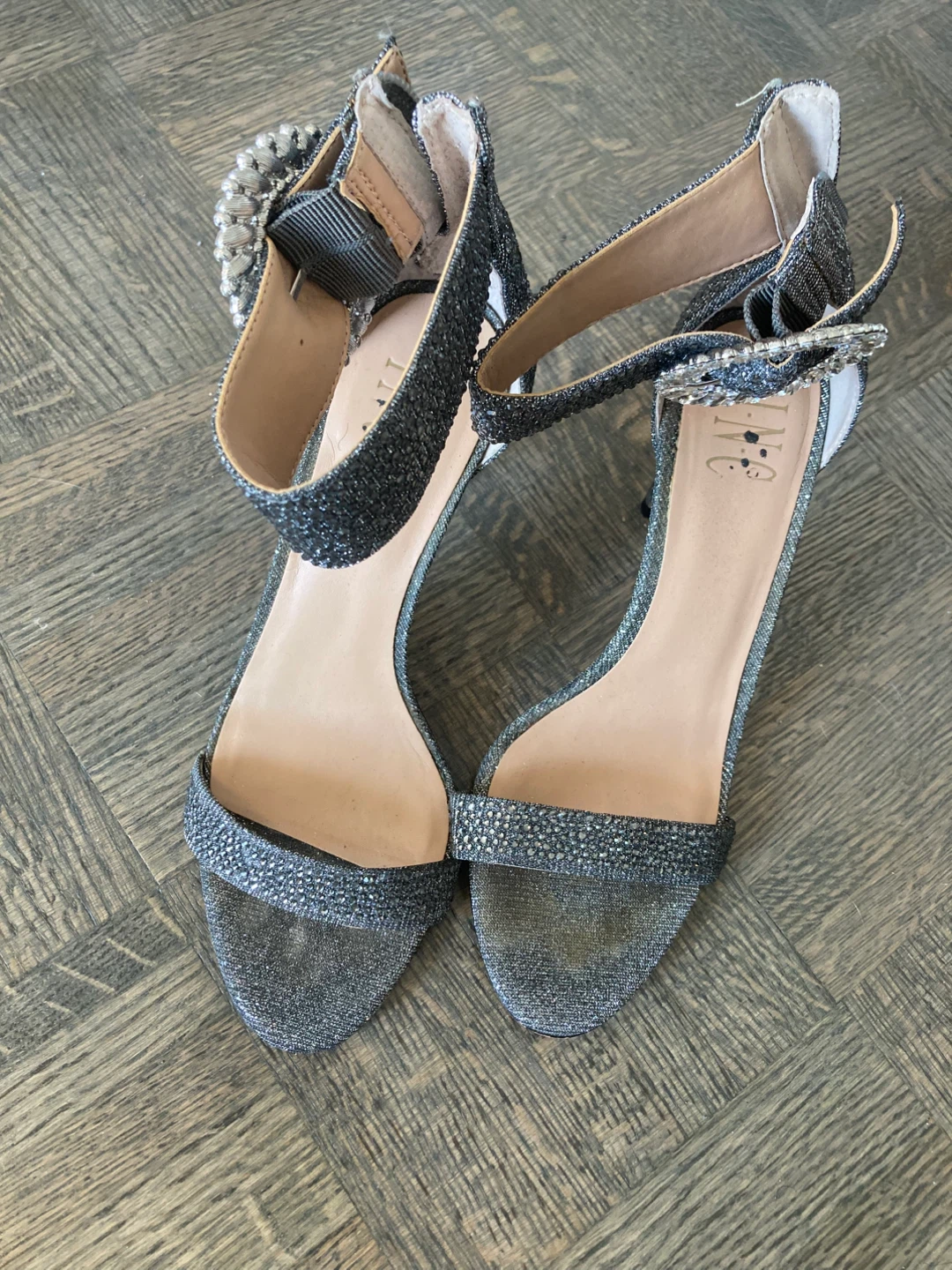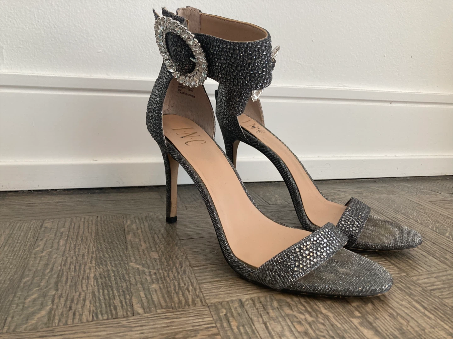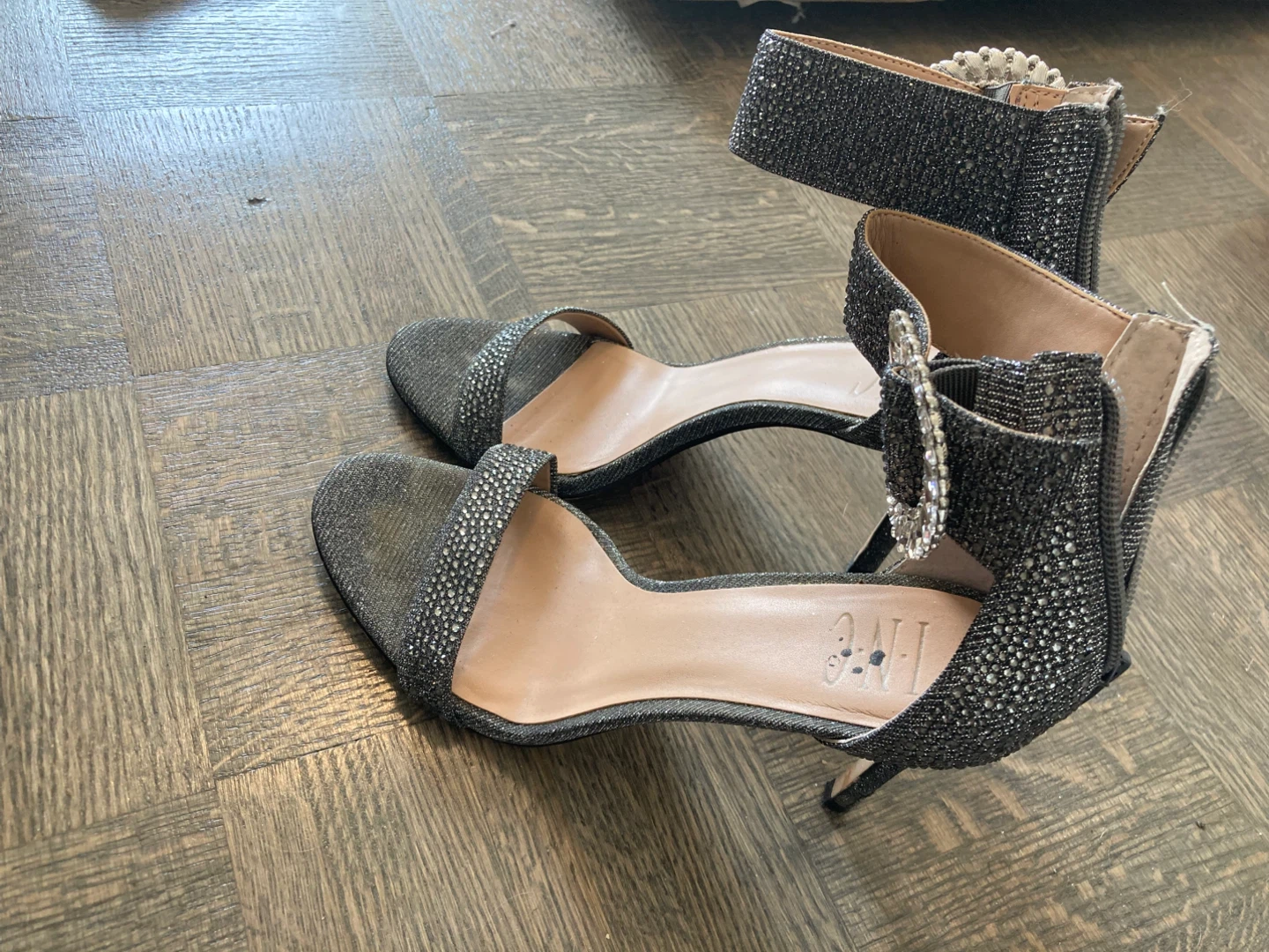 Selling a pair of INC International Concepts heels in a size 7. They're a sparkly silver colour and have a cute jeweled buckle detail. Perfect for a night out!