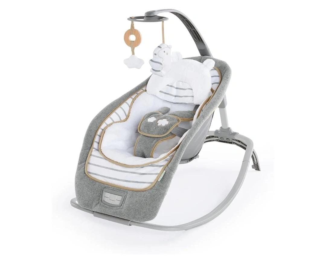 Selling a baby bouncer snd rocking chair ! It's in new open box condition and ready for a new home. This cozy bouncer is perfect for keeping your little one comfortable and entertained. The soft fabrics and gentle rocking motion will soothe your baby, while the overhead toys provide visual stimulation and fun