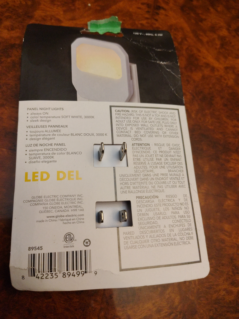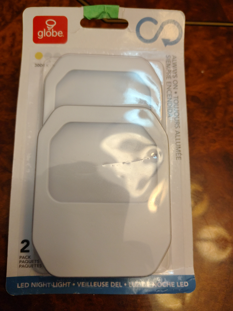 Selling a 2-pack of Globe Electric LED night lights. They're always on and have a sleek design. The colour temperature is a soft white, 3000K. Perfect for adding a gentle glow to any room!