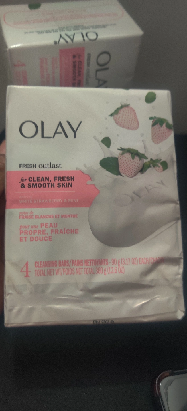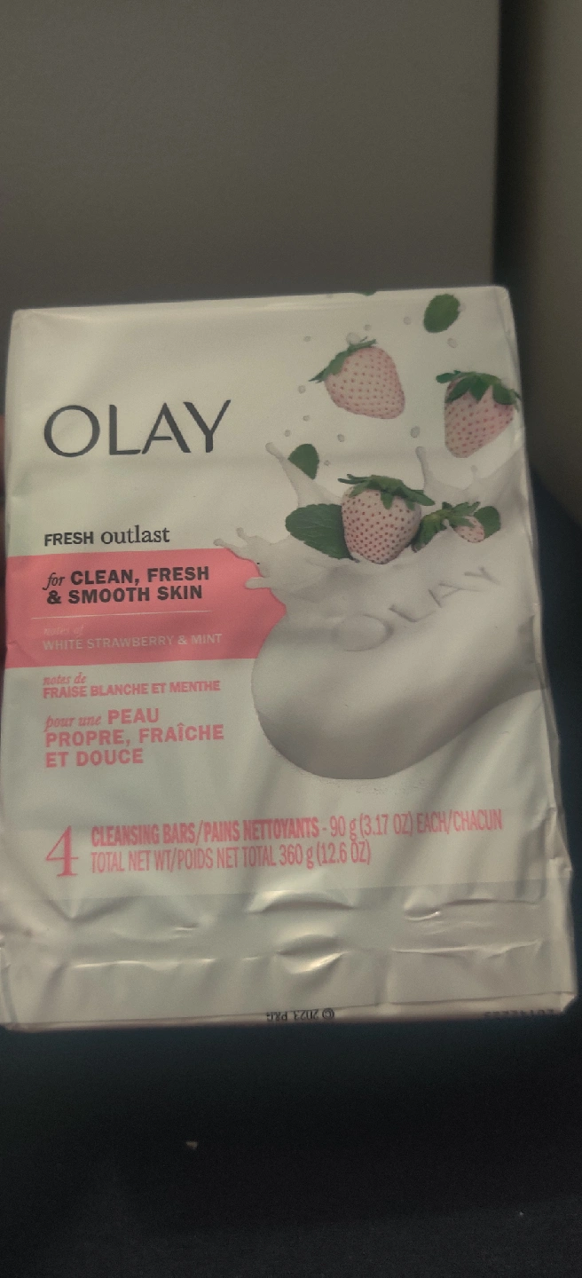 Get clean, fresh, and smooth skin with Olay Fresh Outlast soap! Each package contains 4 cleansing bars with a lovely white strawberry and mint scent. Each bar is 90g (3.17 oz), making the total net weight 360g (12.6 oz)