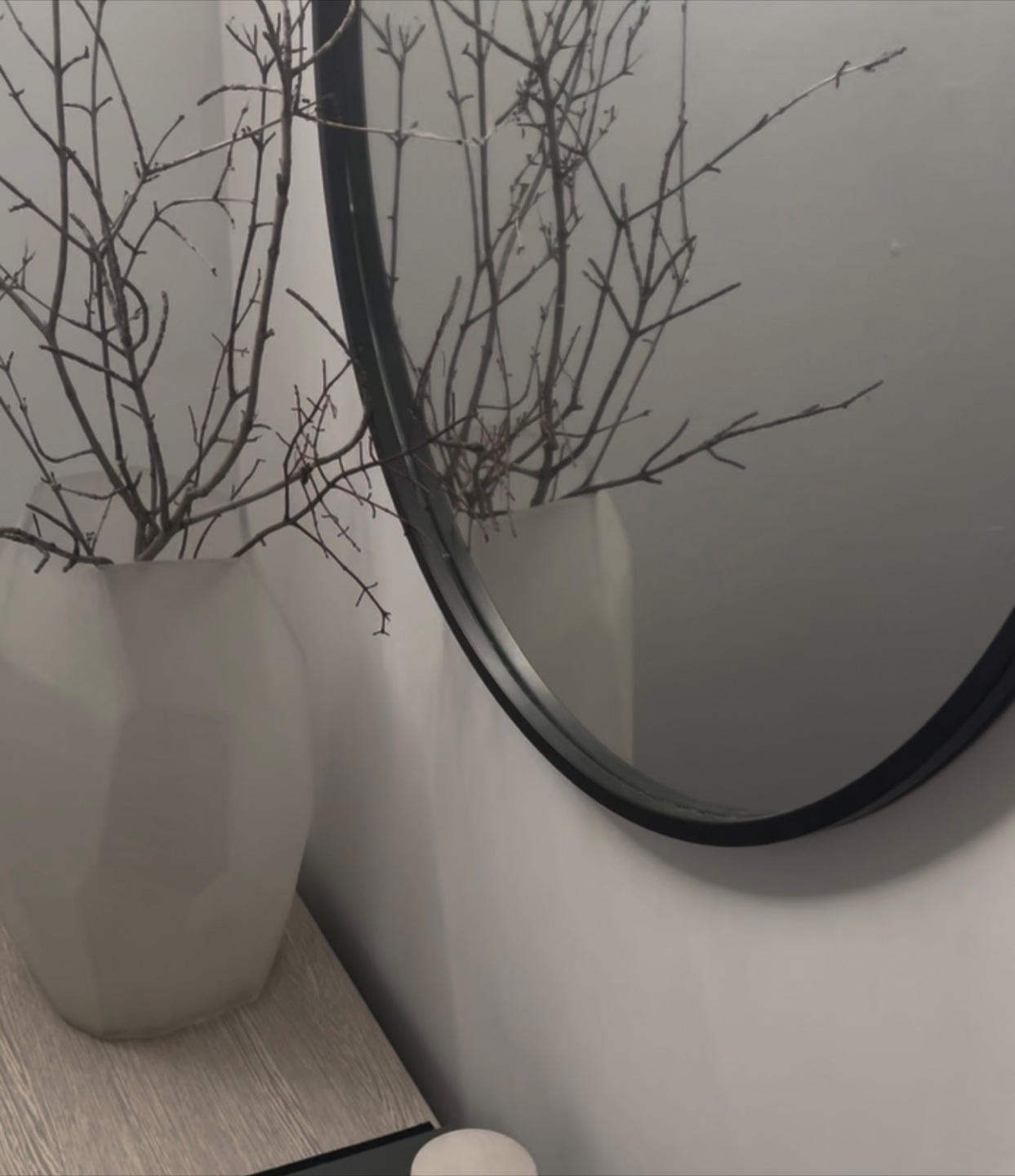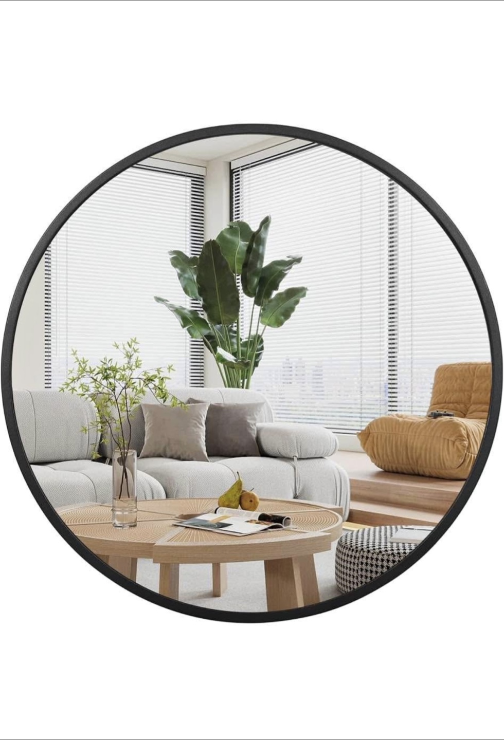 Selling a stylish round wall mirror with a sleek black frame. great condition