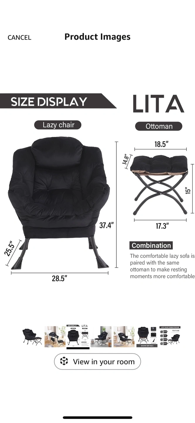 Looking to add a cozy touch to your space? I'm selling a LITA lounge chair in black, complete with a matching ottoman! Perfect for relaxing with a good book or enjoying a quiet moment.