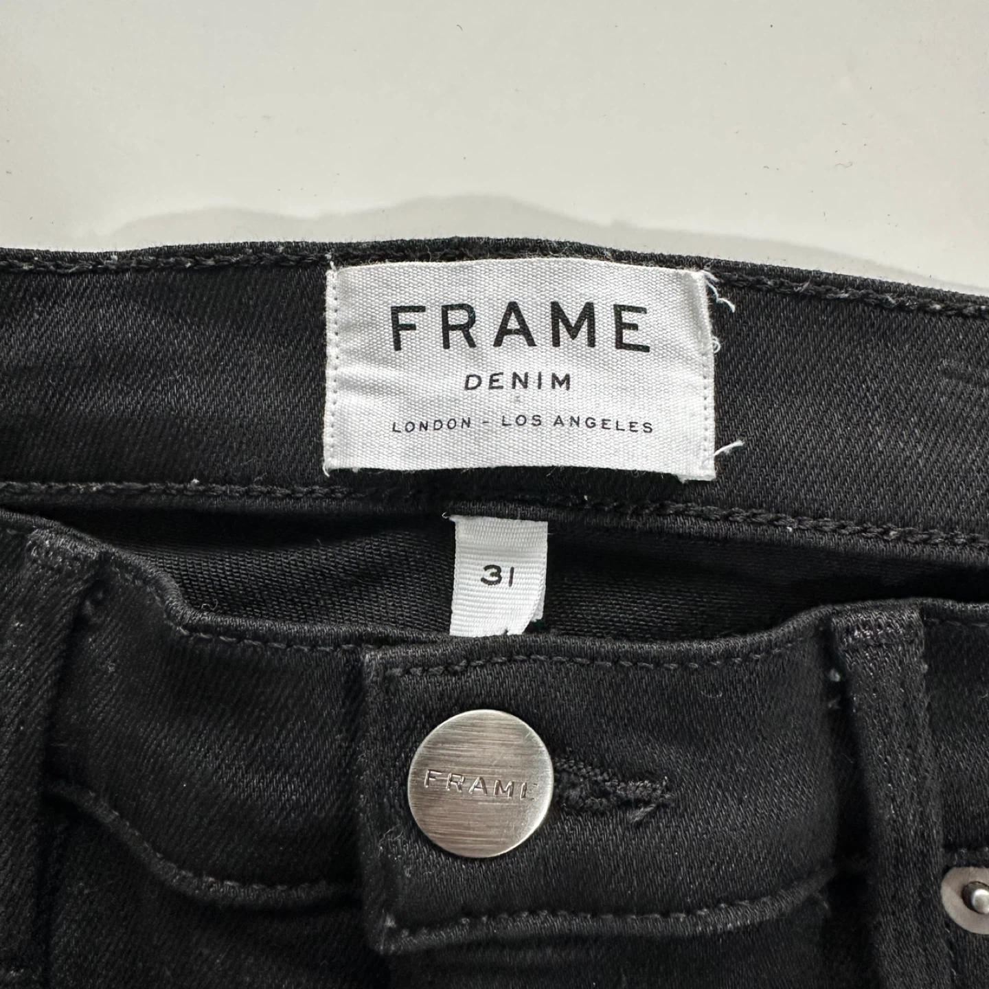 Selling a pair of FRAME Denim Jagger True Skinny jeans in size 31. They're in great condition and a classic black denim wash. These jeans are super versatile and can be dressed up or down! A great addition to any wardrobe