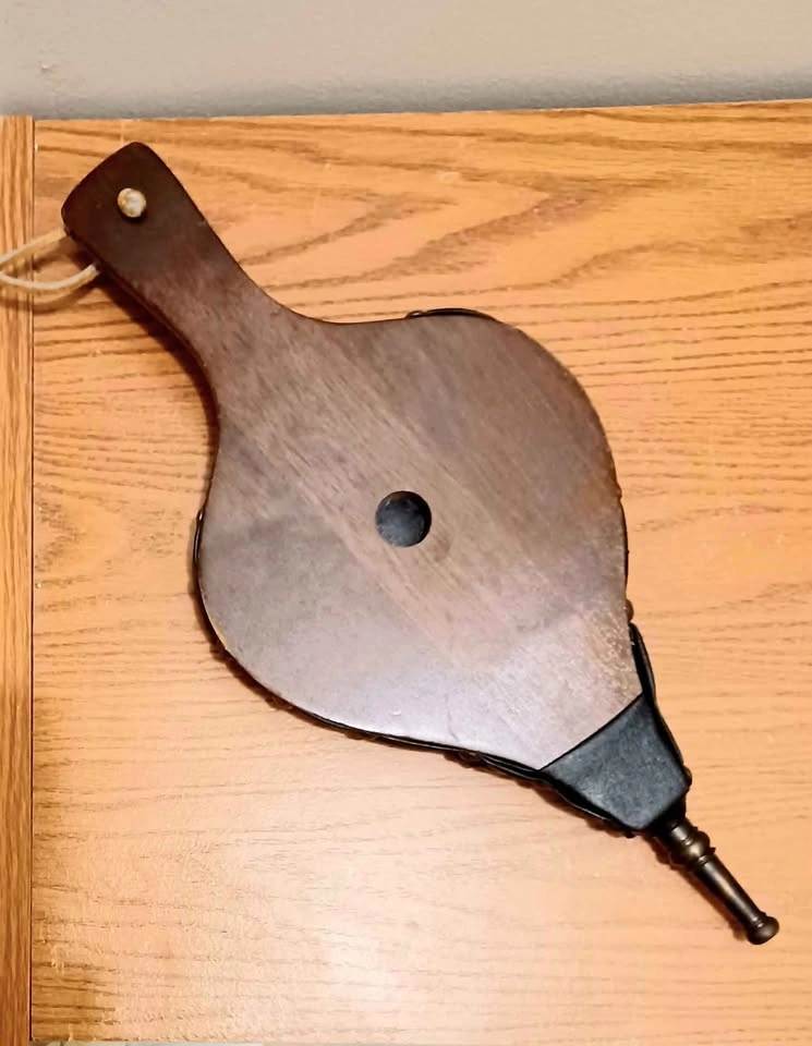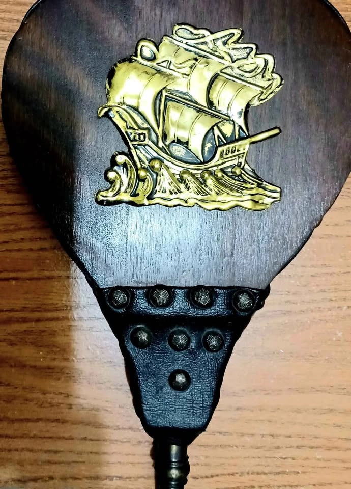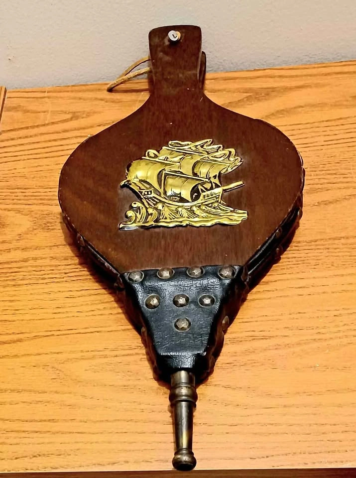 65Vintage Fireplace Bellow, typically used to stoke a fire by blowing air into it, to burn more efficiently. The bellows are crafted with wood, leather & brass galleon ship. Excellent condition. Please check out my other posts!