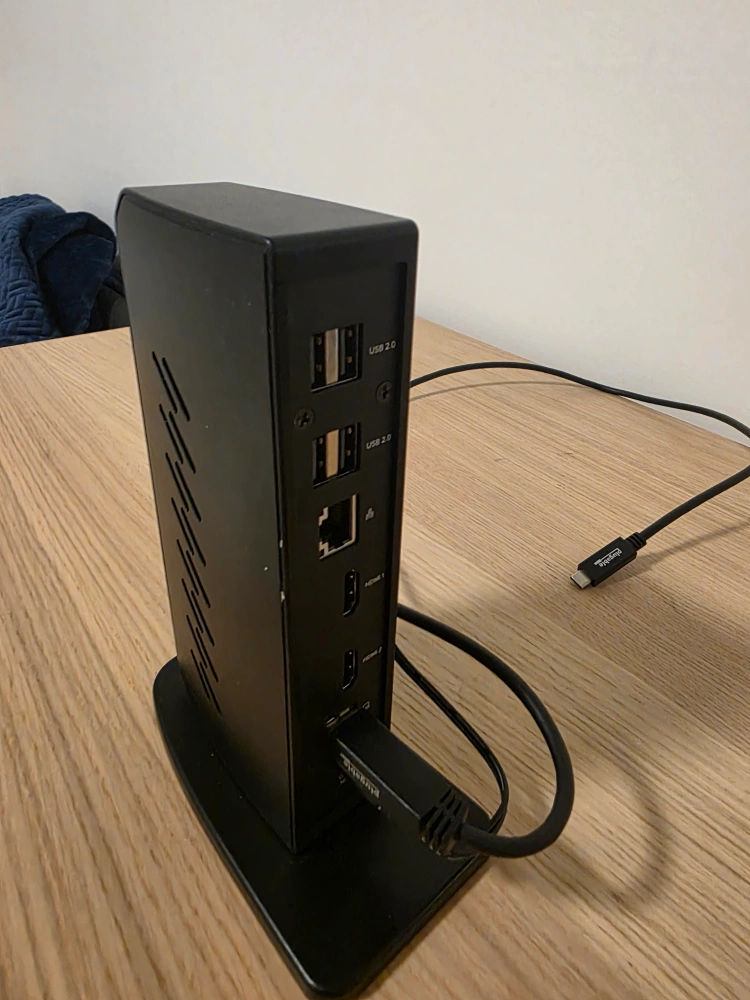 Selling a Plugable DisplayLink docking station. It has multiple USB 2.0 ports, HDMI ports, and an Ethernet port. Great for expanding your connectivity!