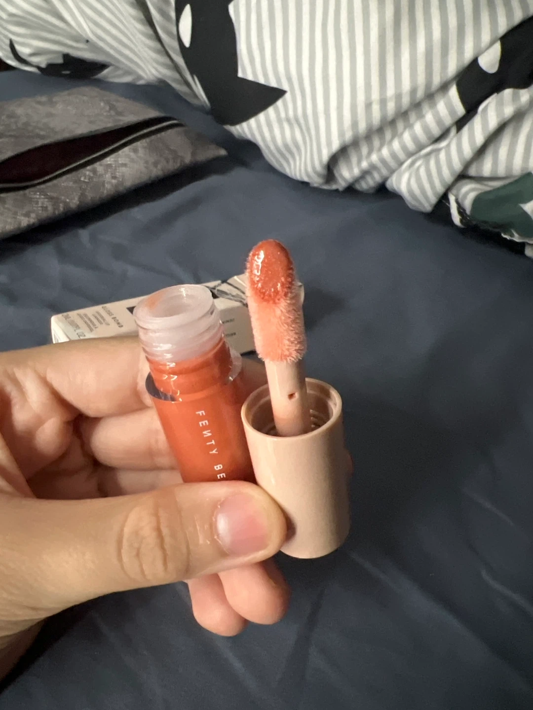 Selling a Fenty Beauty Gloss Bomb Universal Lip Luminizer in the shade Fenty Glow! It's a beautiful, universally flattering shade that gives your lips a gorgeous shine. This size is 2ml / 0.07 fl oz