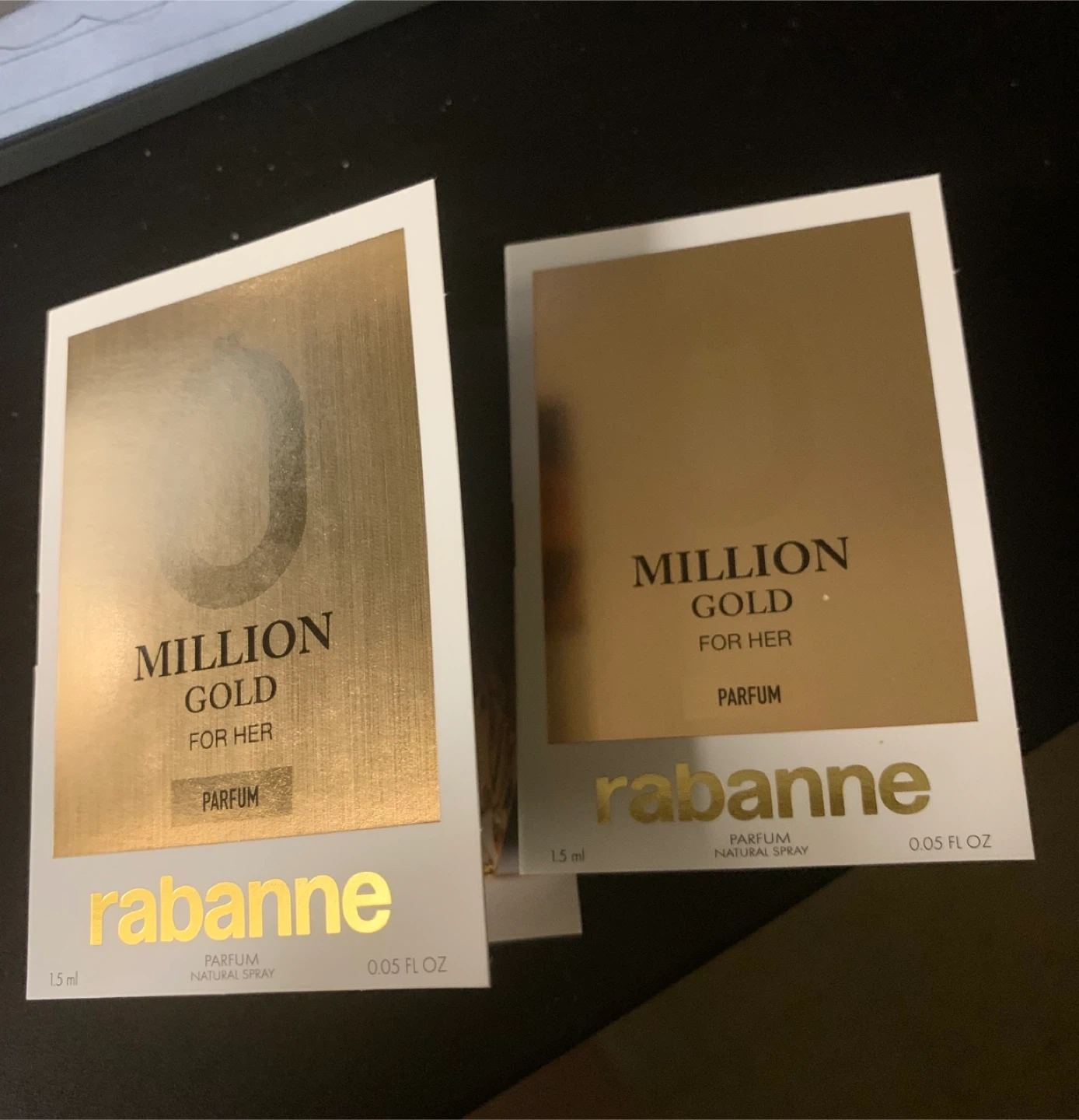 2 viles of RABANNE Million Gold For Her Parfum Sample