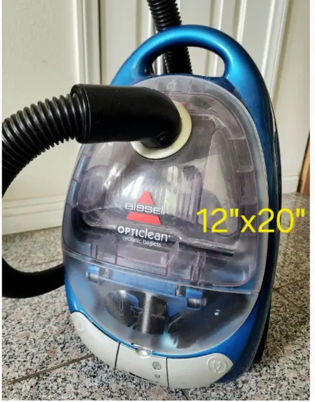 Selling a Bissell OptiClean cyclonic bagless vacuum. It's in great shape and ready to help keep your place clean! The dimensions are approximately 12" x 20".