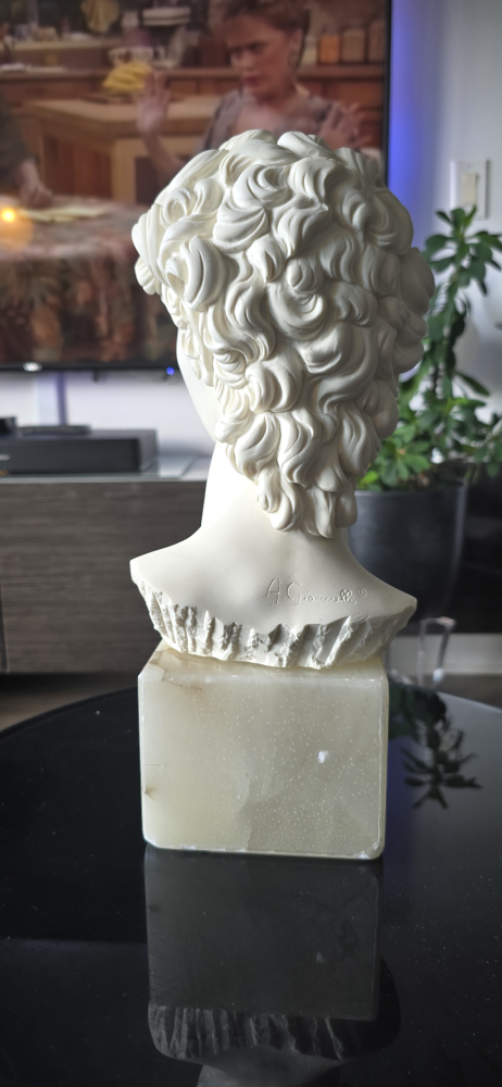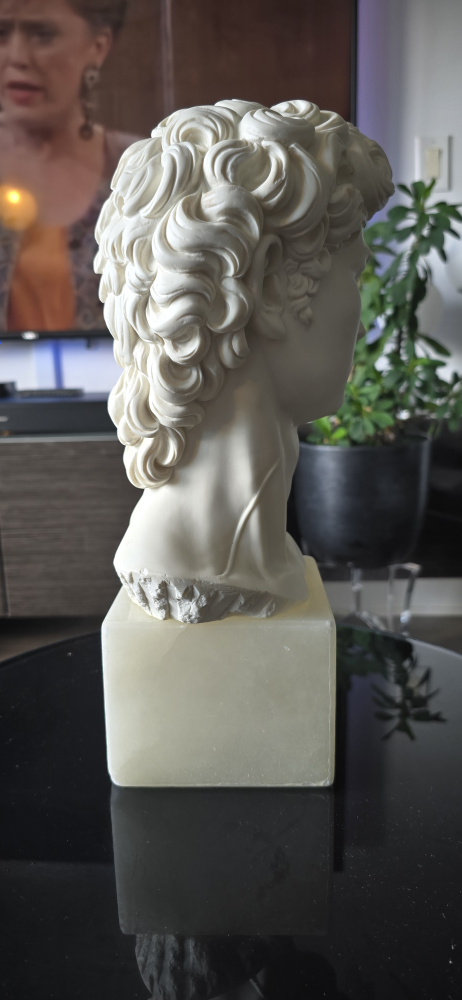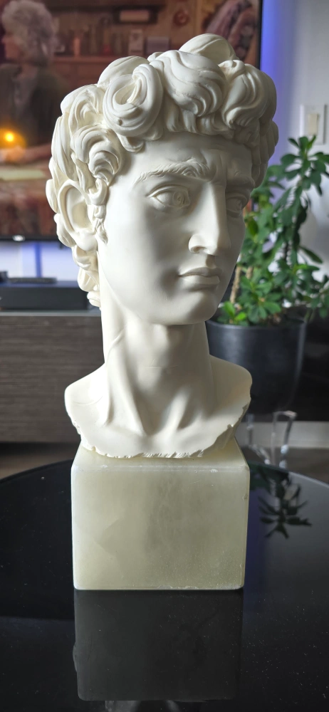 Behold this used, but dignified, David Bust by Michelangelo statue, standing at 15 inches high, perfect for adding a touch of classical elegance to any room. This impressive piece captures the intricate detail and artistry of the original masterpiece, bringing a sense of history and culture into your space.