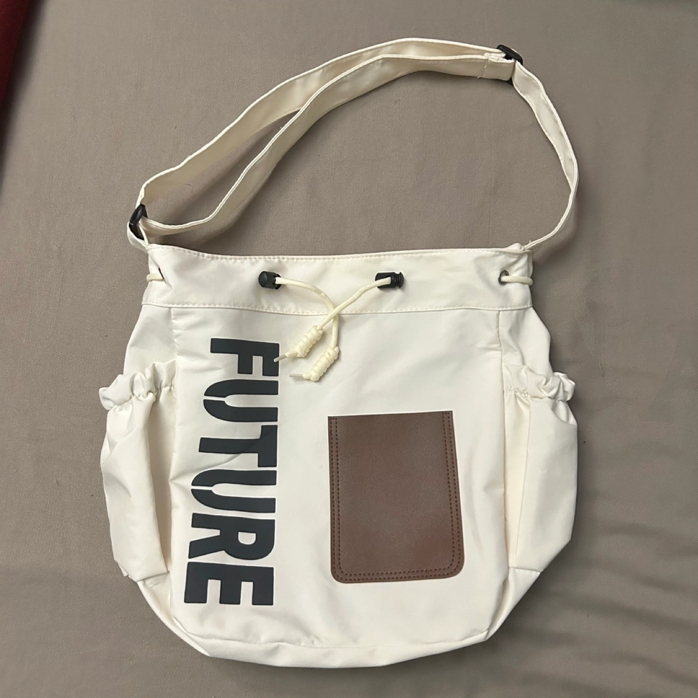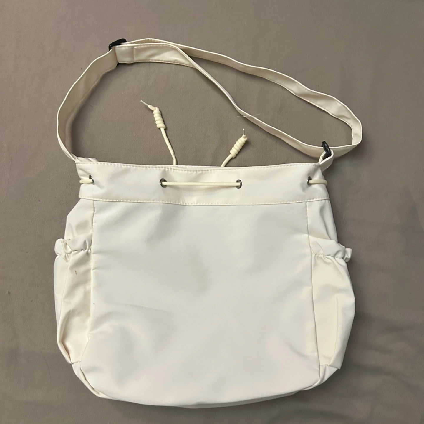 This is a beige shoulder bag that's in great condition. It's a stylish and functional bag for everyday use.