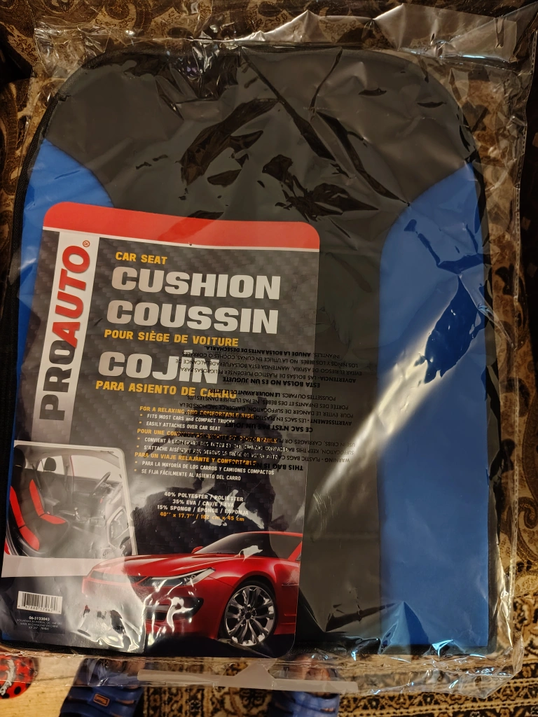 940Selling a brand new car seat cushion! It's still in its original packaging. This cushion is designed for comfort while driving in cars, light trucks, and vans. It easily attaches over car seats.