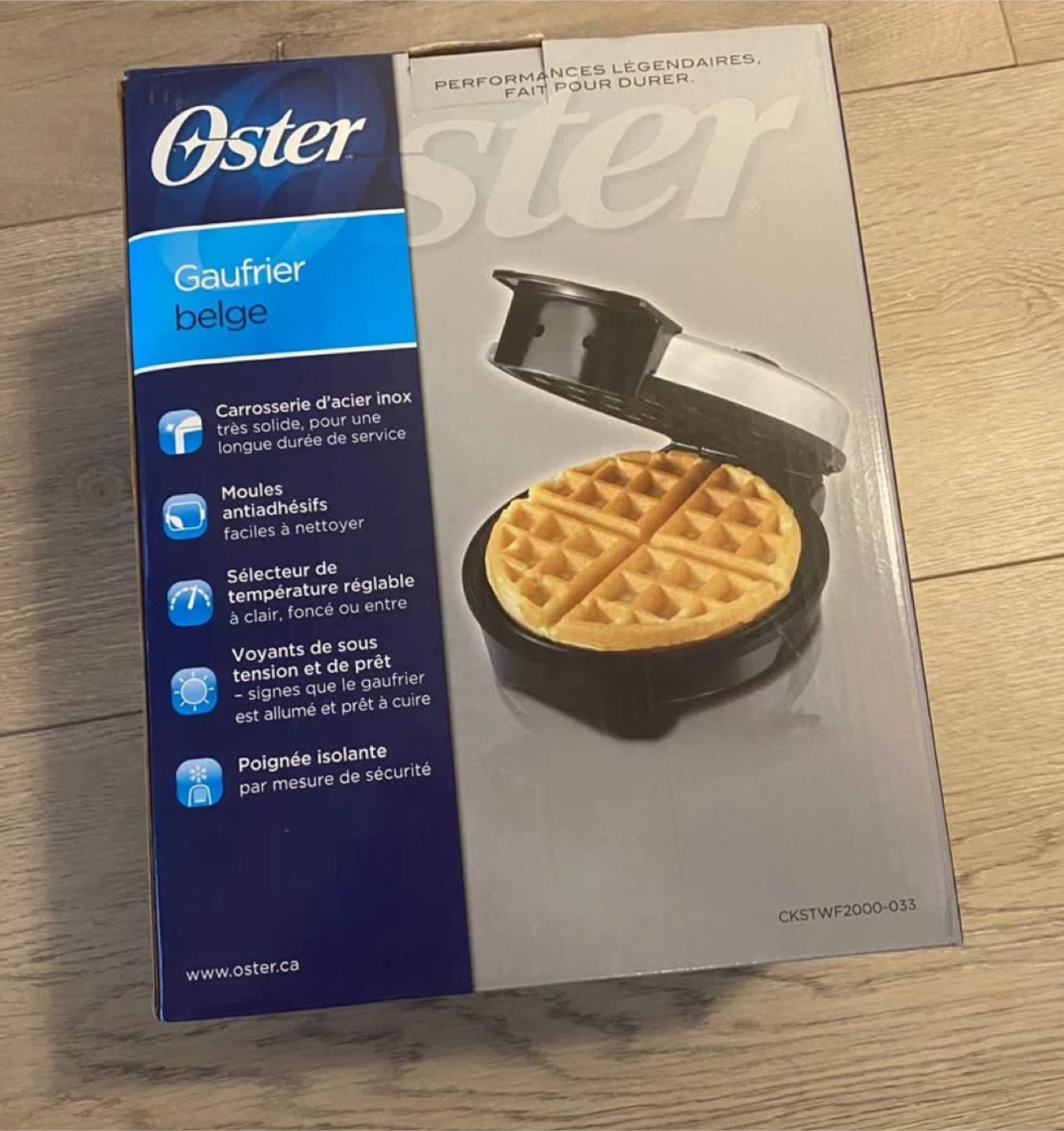 Get ready for delicious homemade waffles with this Oster Belgian waffle maker! It features a stainless steel body for durability and non-stick plates for easy cleaning. The adjustable temperature control lets you make waffles light, dark, or anywhere in between. Indicator lights let you know when the waffle maker is on and ready to cook. Plus, the insulated handle provides a secure grip.