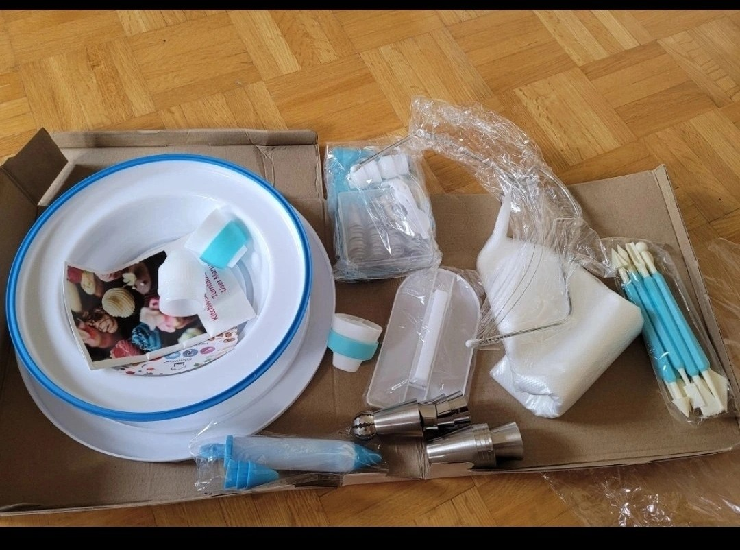 I'm selling a brand new Kitchenwise cake turntable decorating kit! It's a beautiful cake decorating kit for both beginners and pro decorators.