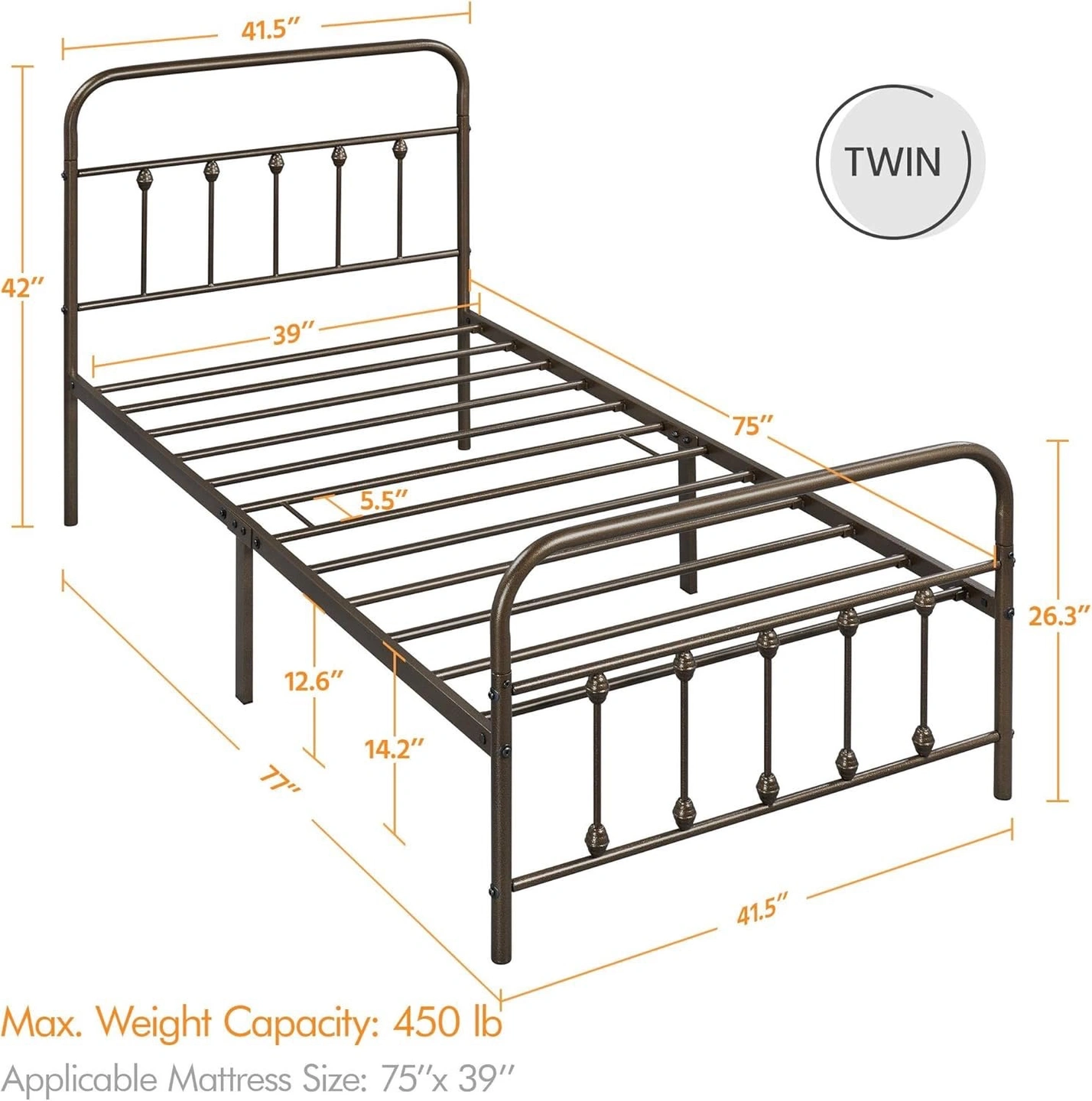 Yaheetech Classic Metal Platform Bed Frame Mattress Foundation with Victorian Style Iron-Art Headboard/Footboard/Under Bed Storage/No Box Spring Needed