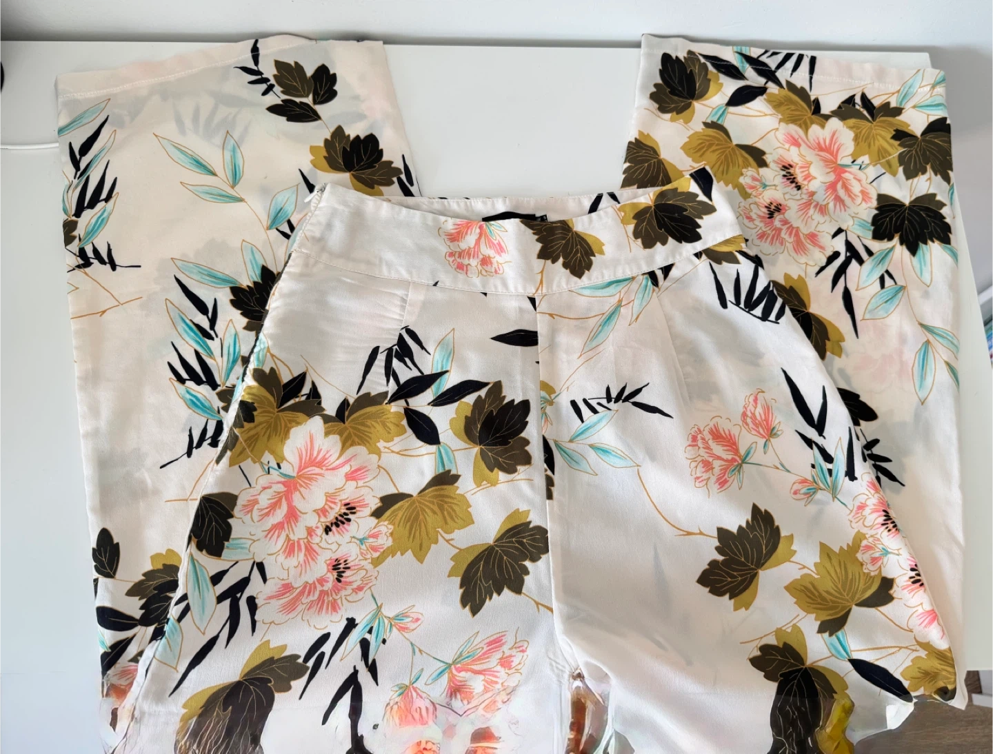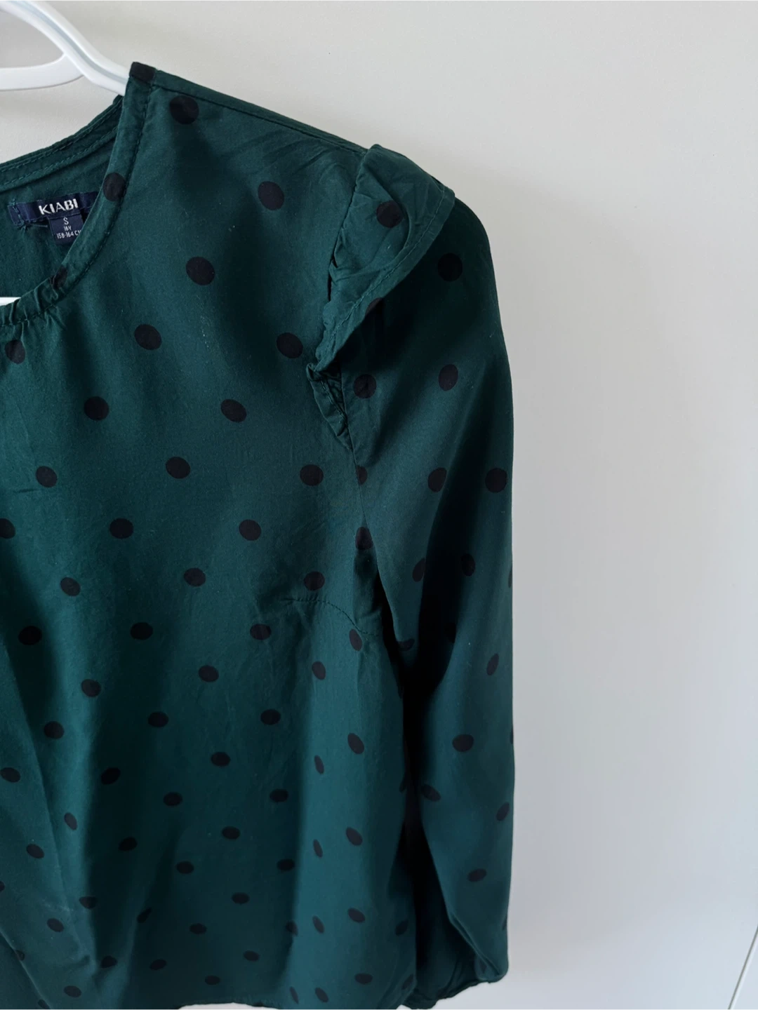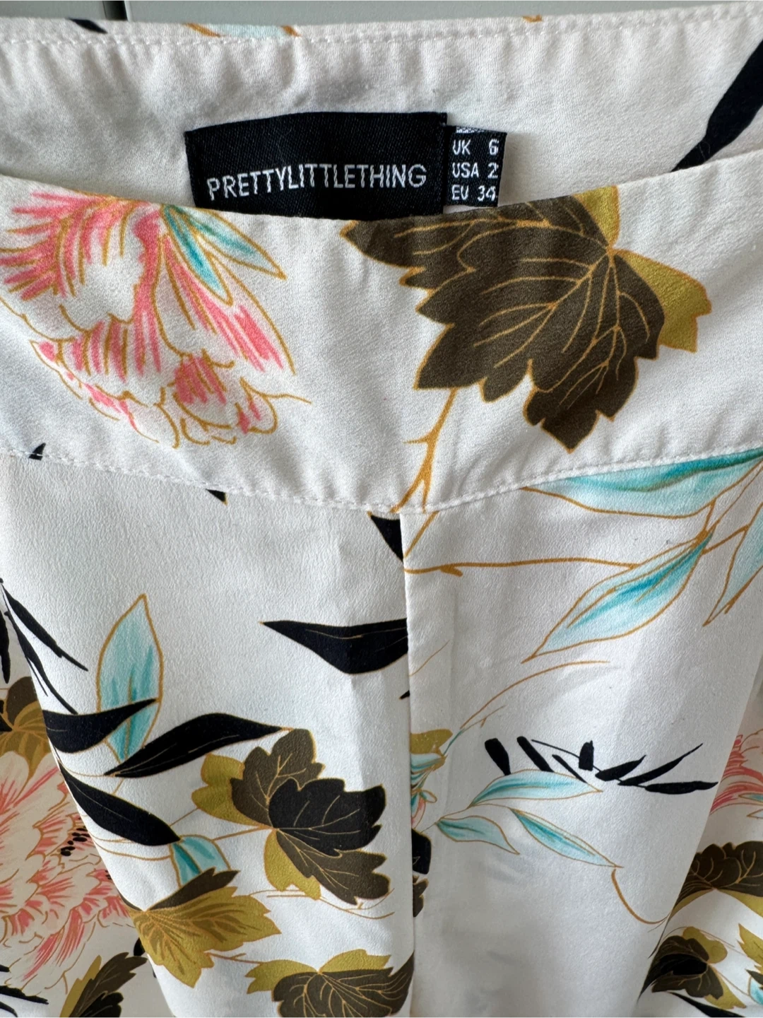 Selling a cute set including a Kiabi green blouse with black polka dots and floral print pants from prettylittlethings Xs/S. The blouse is a size S but can fit XS . Perfect for a stylish, coordinated look!