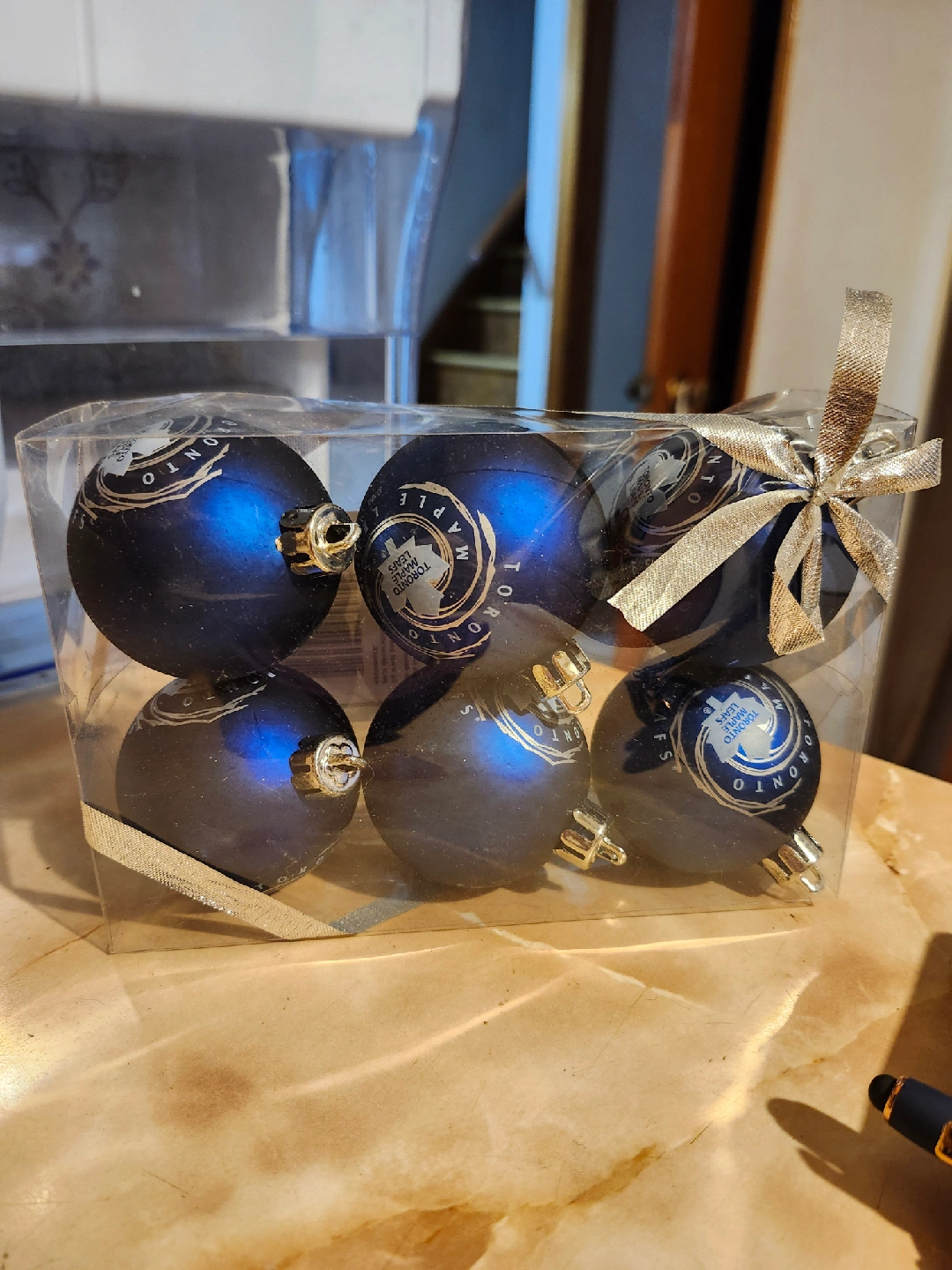Get ready to deck the halls with these Toronto Maple Leafs ornaments! This pack includes six navy blue ornaments, perfect for showing off your team spirit this holiday season. They come in the original packaging, ready to hang on your tree