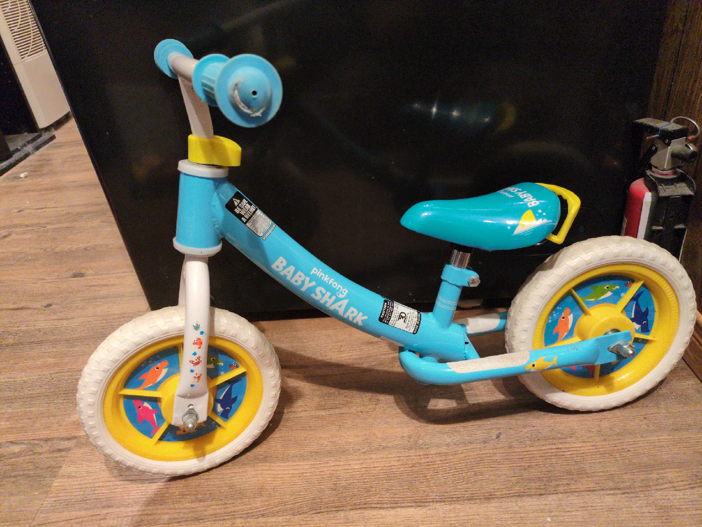 Selling a cute Pinkfong Baby Shark balance bike! It's in great shape and ready for a new little rider. Perfect for helping your child develop balance and coordination skills while having fun with their favourite Baby Shark characters. Toddler size bike.