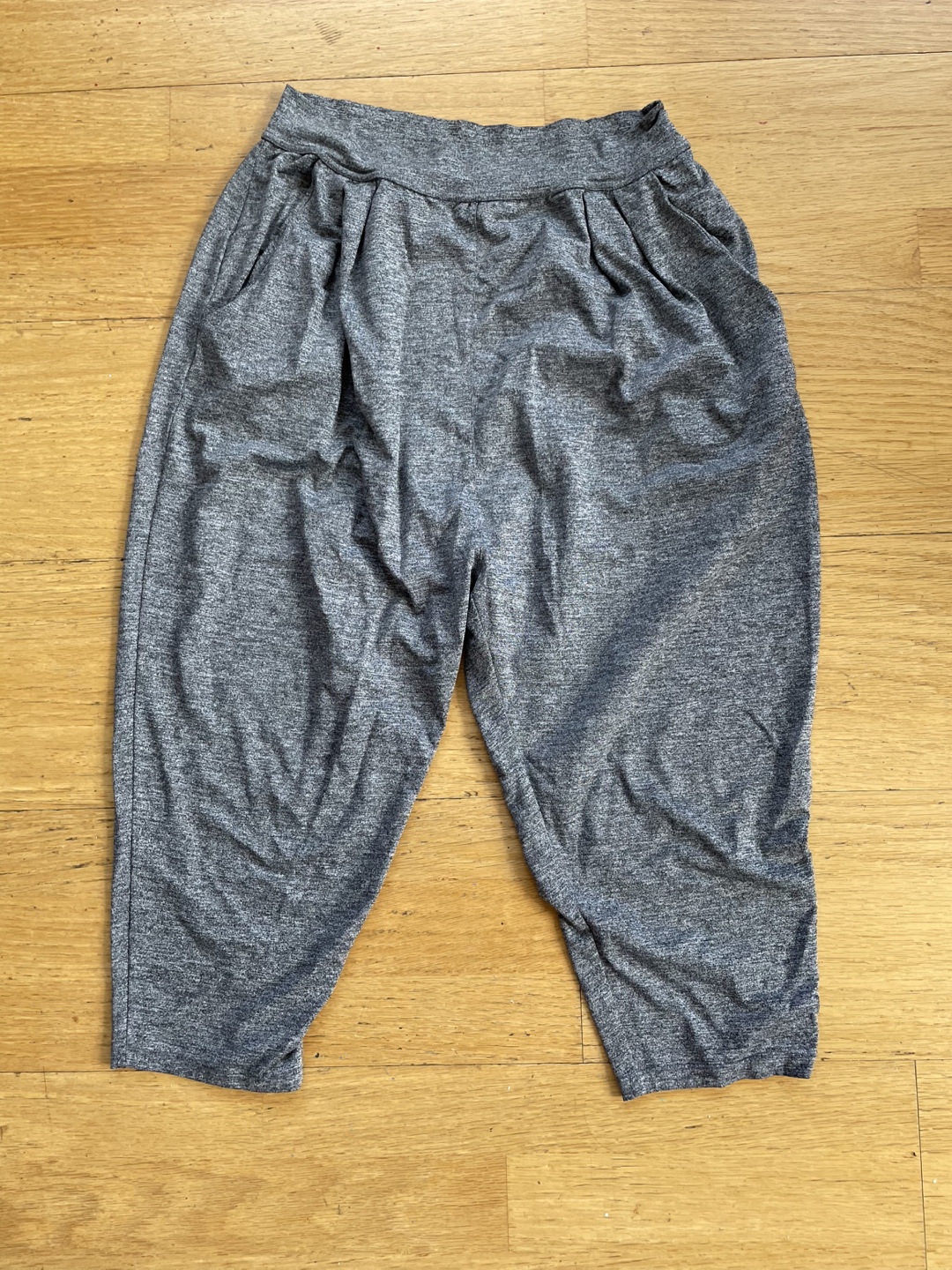 Size medium baggy workout pants. Can fit XL. Meant to fit tight on the calves but baggy on the hips. Kind of like hammer pants but not as drastic.