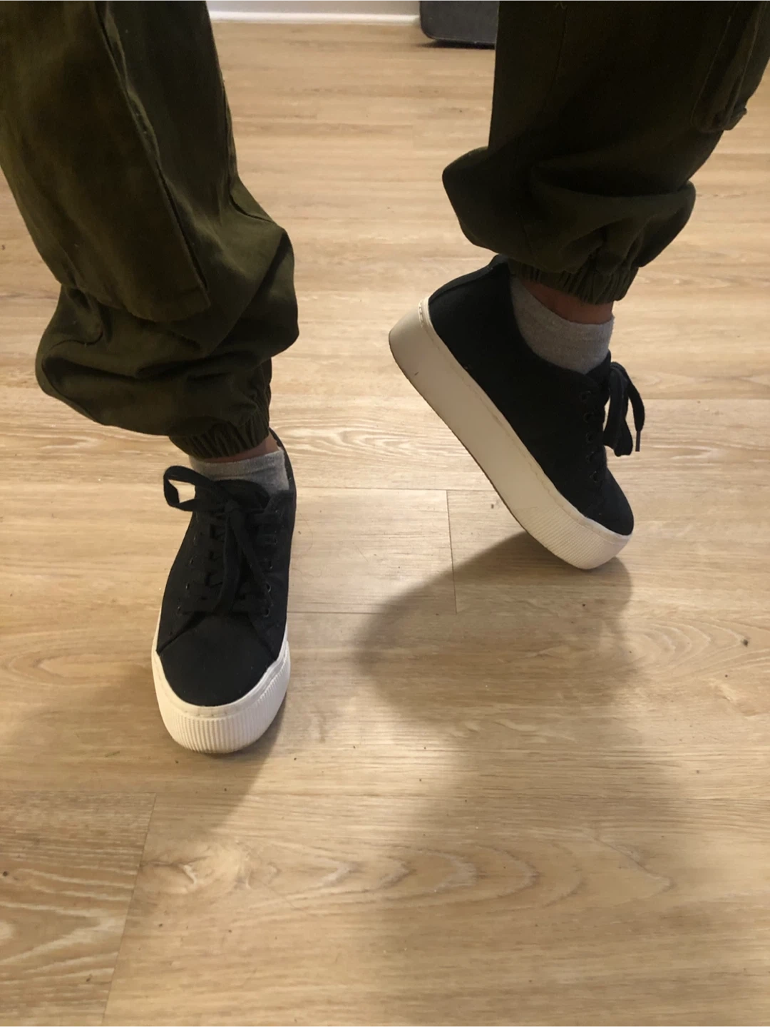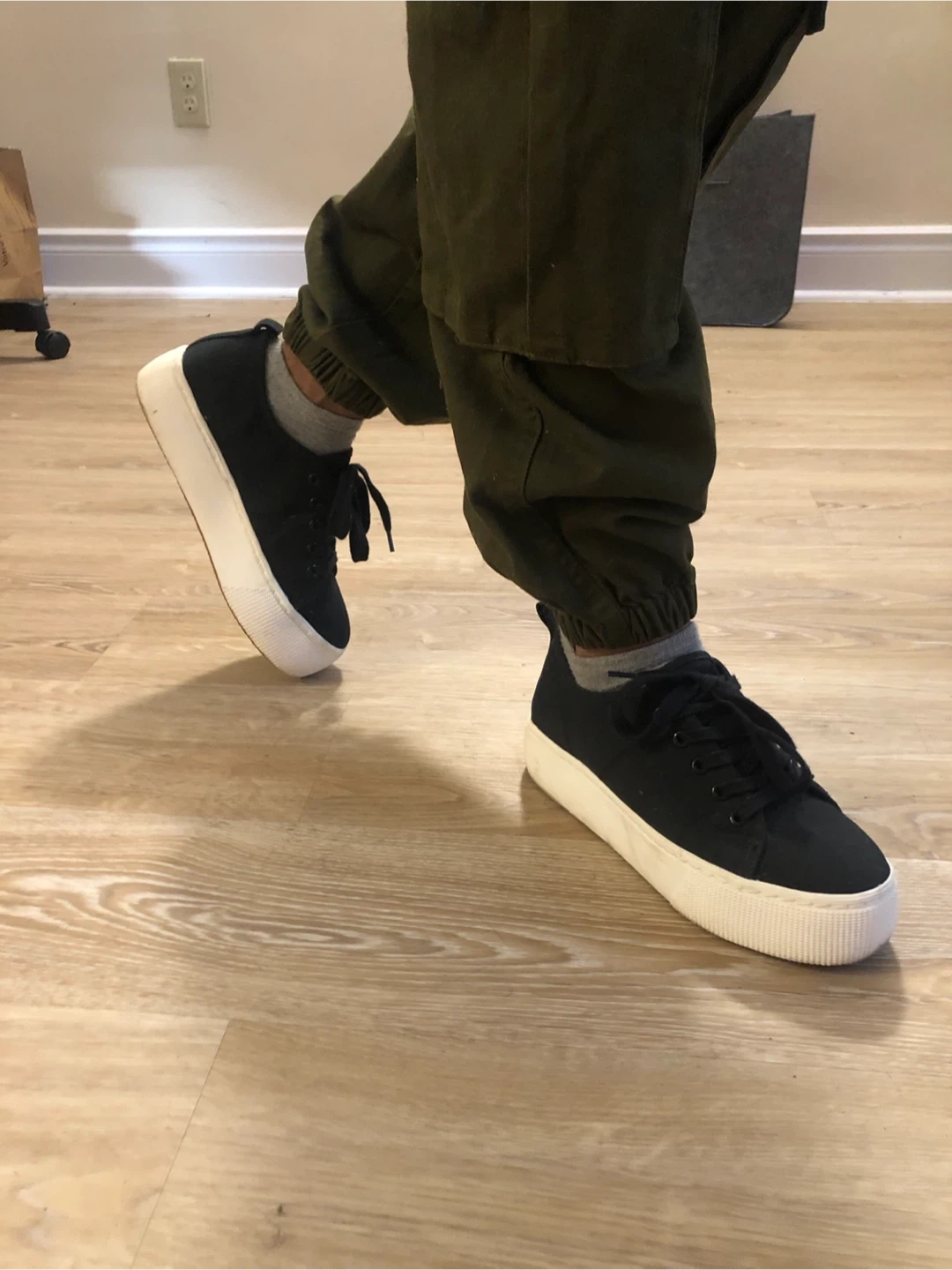 Selling a pair of Abound black platform sneakers in size 7. They're in great condition and have a stylish, minimalist look with a comfortable 1.5in platform sole. Perfect for adding a bit of height and style to any casual outfit!