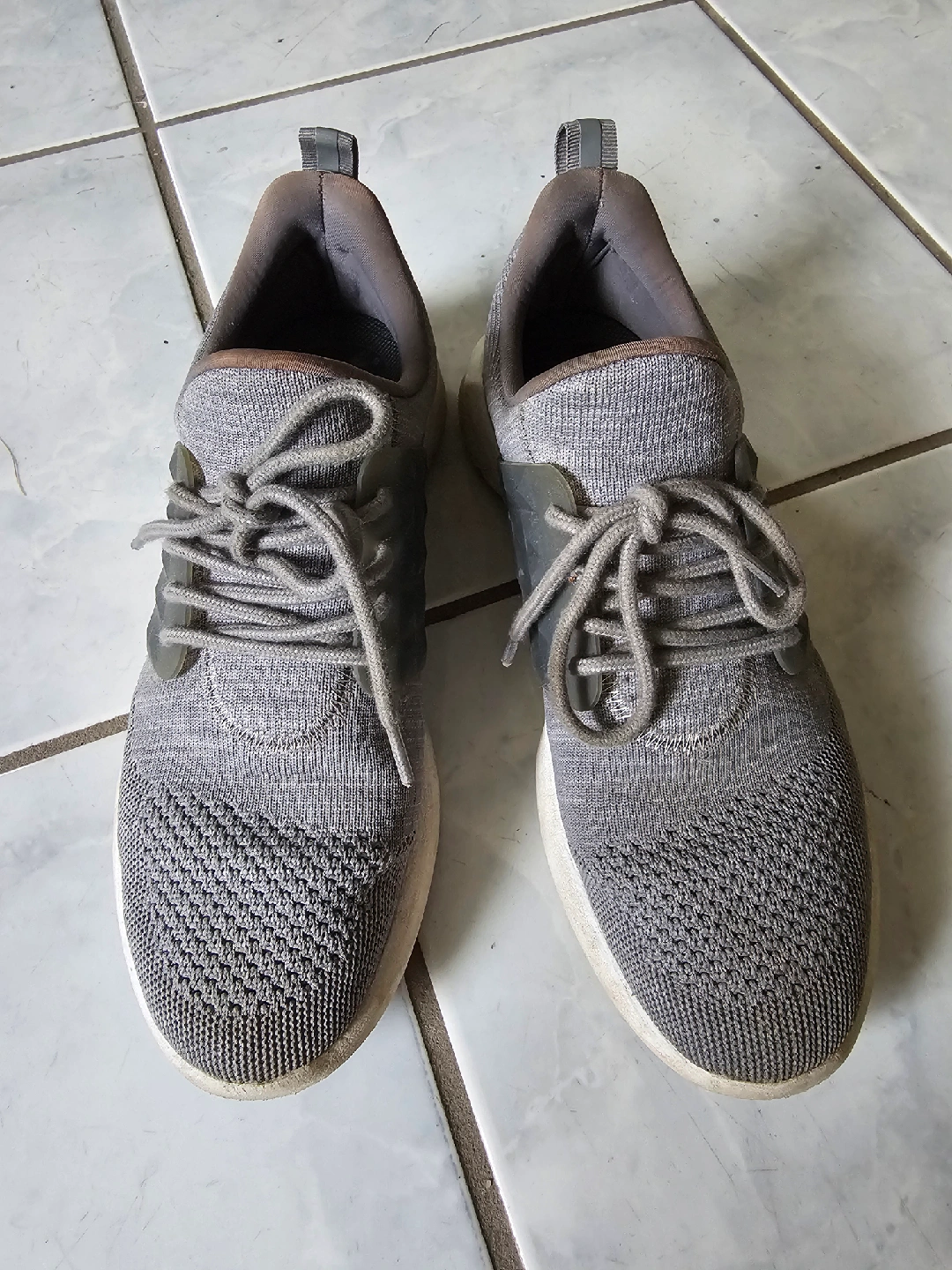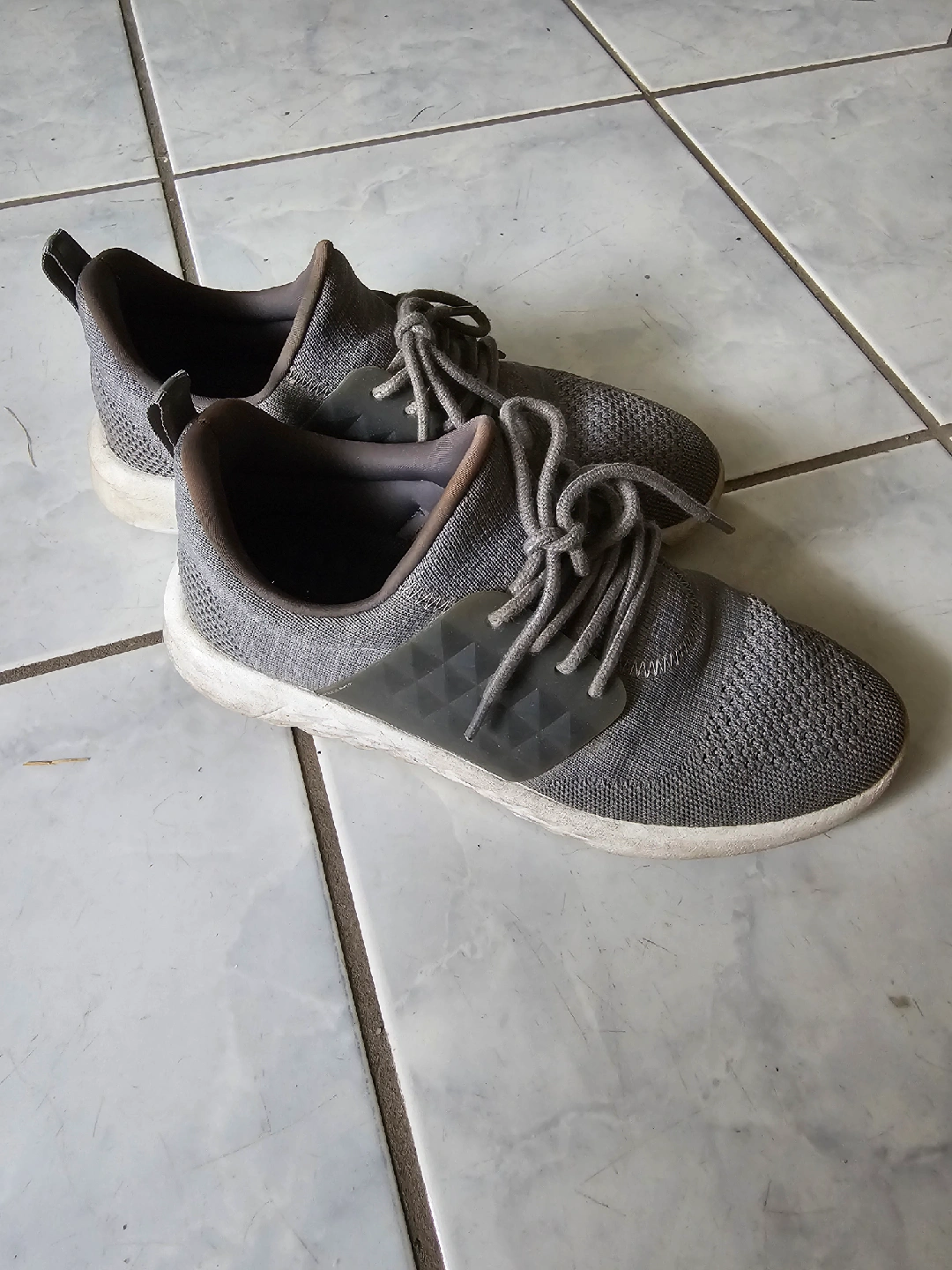 Very accessible, easy to wear slip on gray runnning shoes! They show some signs of wear, but still have lots of life left in them! Perfect for jogging or everyday wear