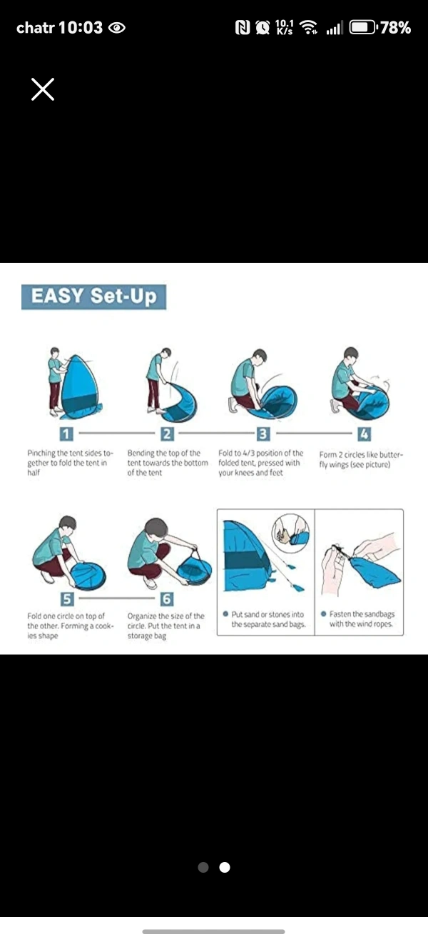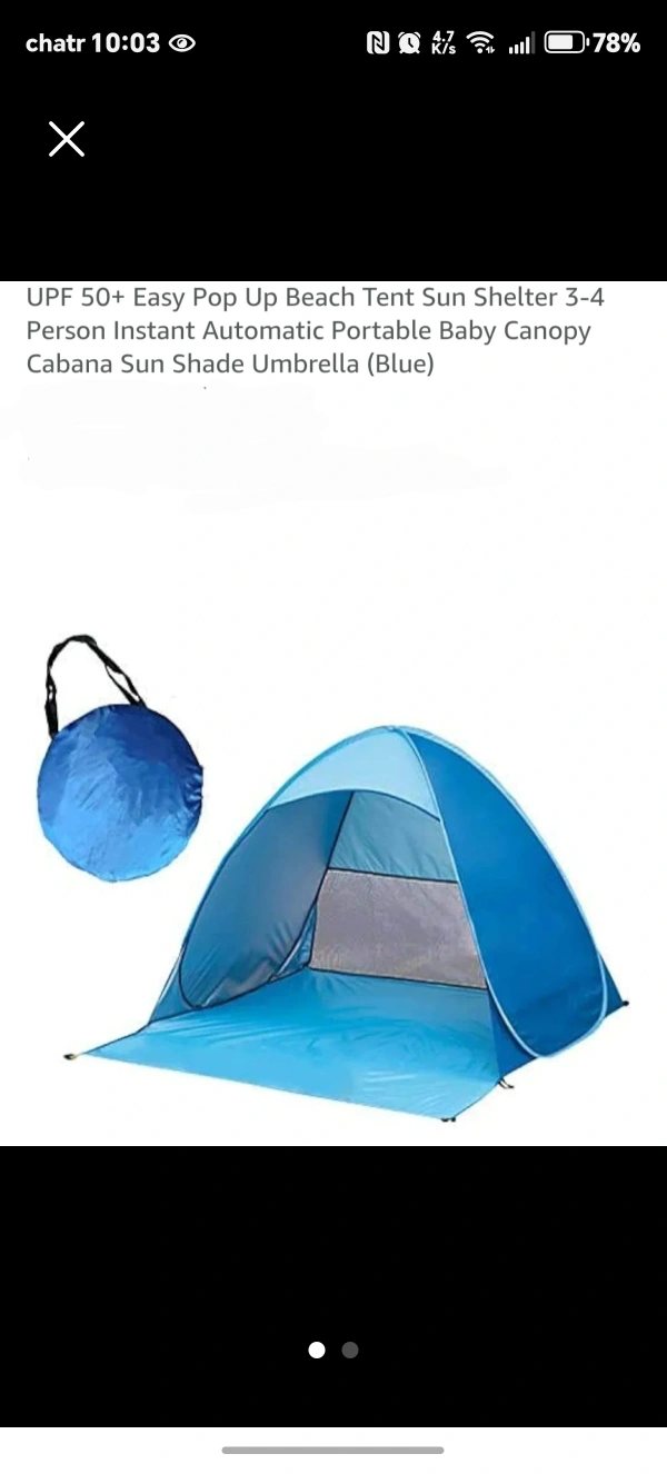 This blue beach tent sun shelter is perfect for a day at the beach! It's UPF 50+ to protect you from the sun. It's easy to set up and take down. Enjoy the beach with this portable sun shade umbrella!Only use once.