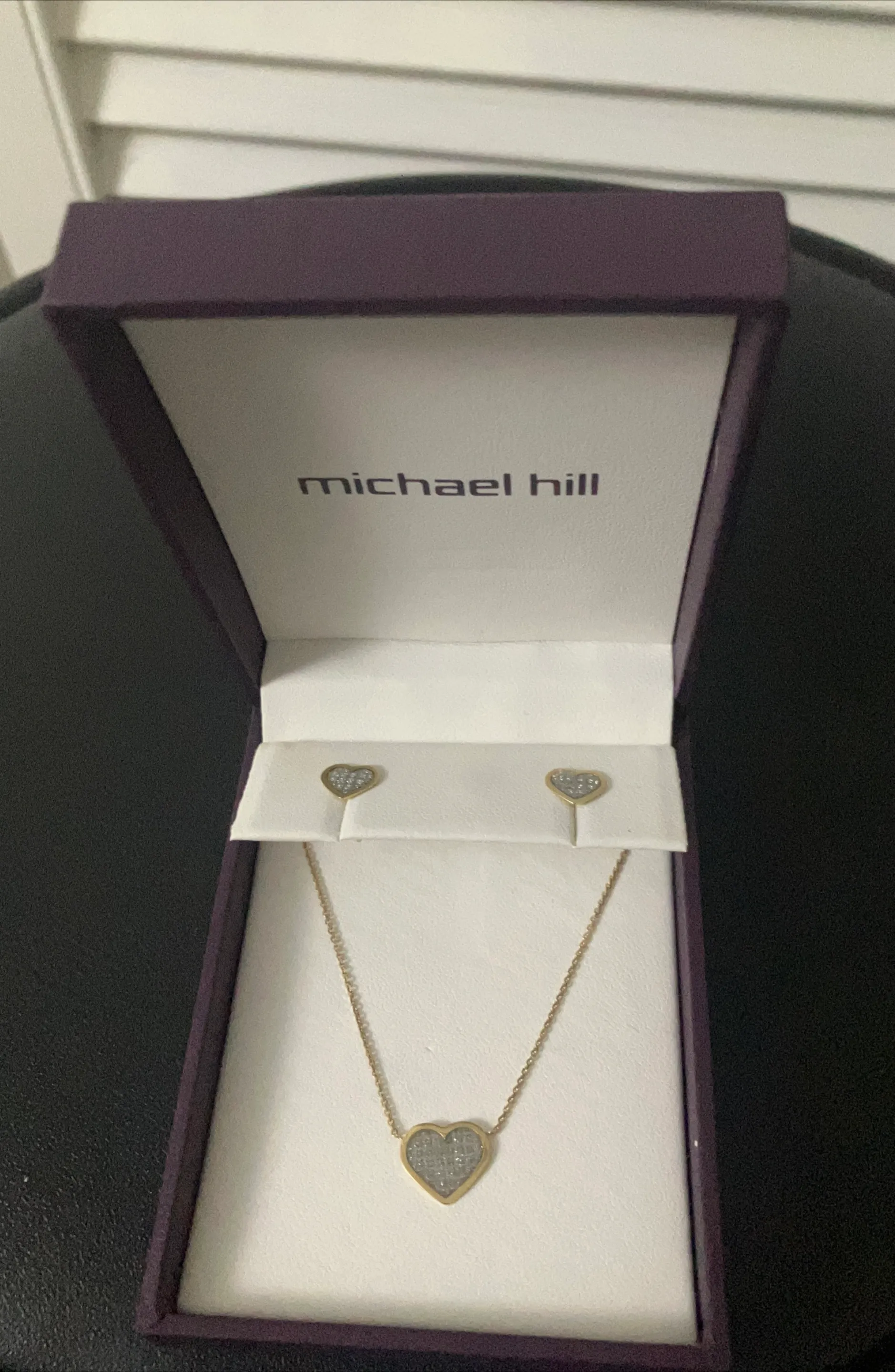 Selling a beautiful 10k yellow gold heart-shaped necklace and earring set from Michael Hill! Comes in the original box, perfect for gifting or treating yourself