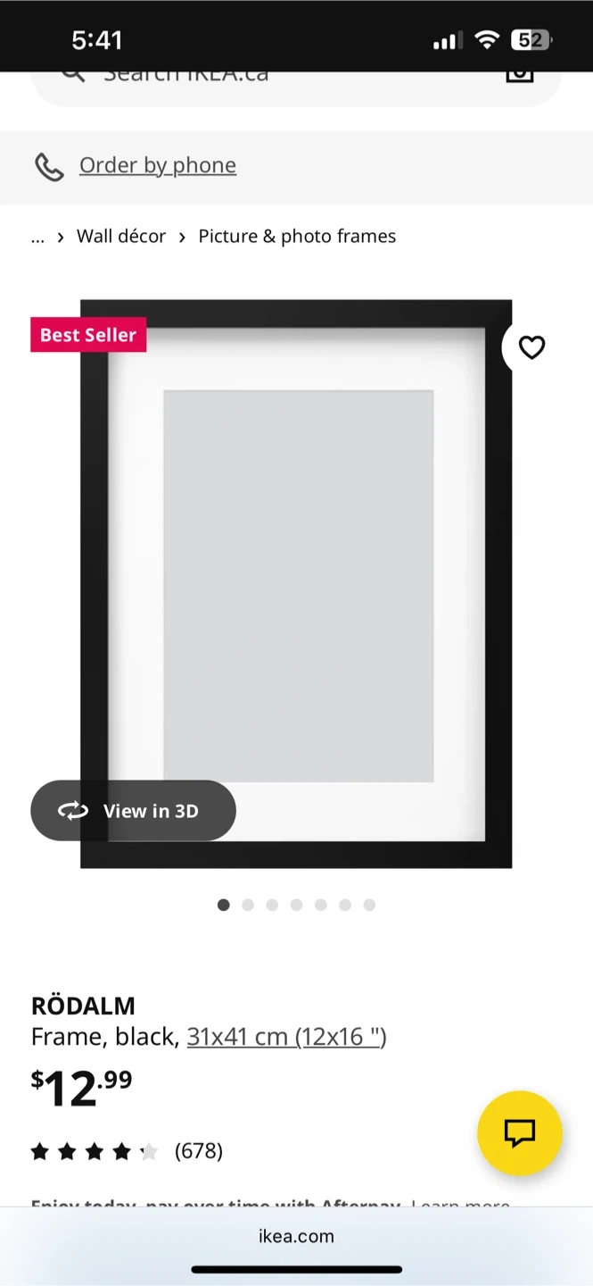 9 (Nine) IKEA RÖDALM Frame, Black, 12x16"