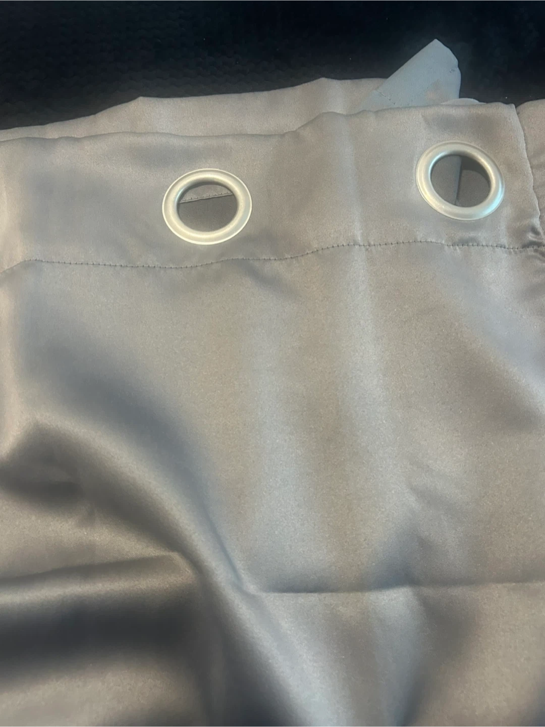 Selling these silver grey curtain panels. They're in great shape and made of 100% polyester. They have grommets at the top for easy hanging. Machine washable too Two panels
