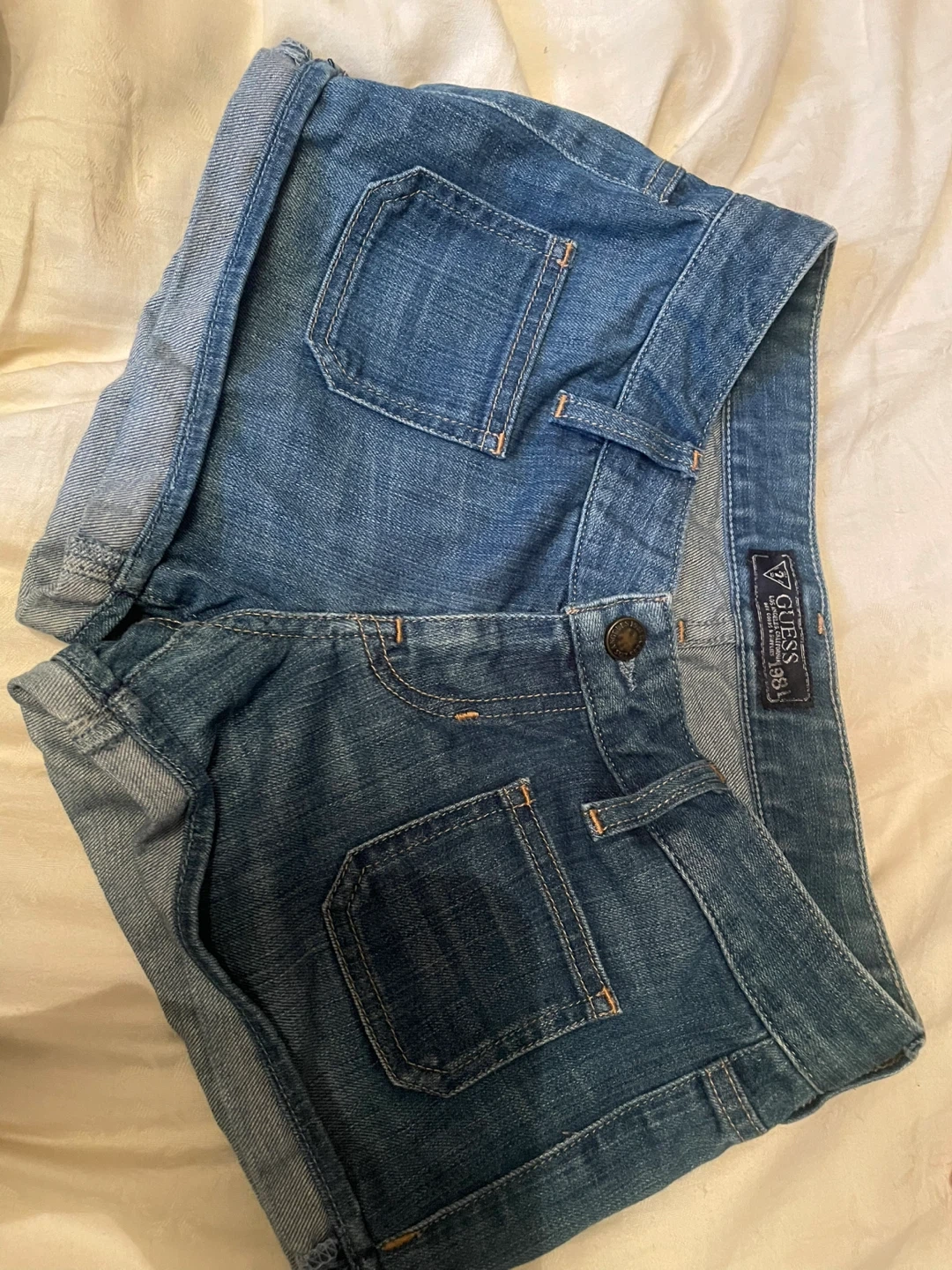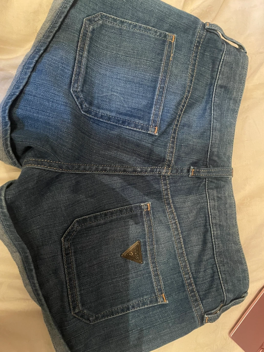Selling a pair of Guess denim shorts in size 26. fits a small! They're in great condition and feature the classic Guess logo on the back pocket. Perfect for summer!