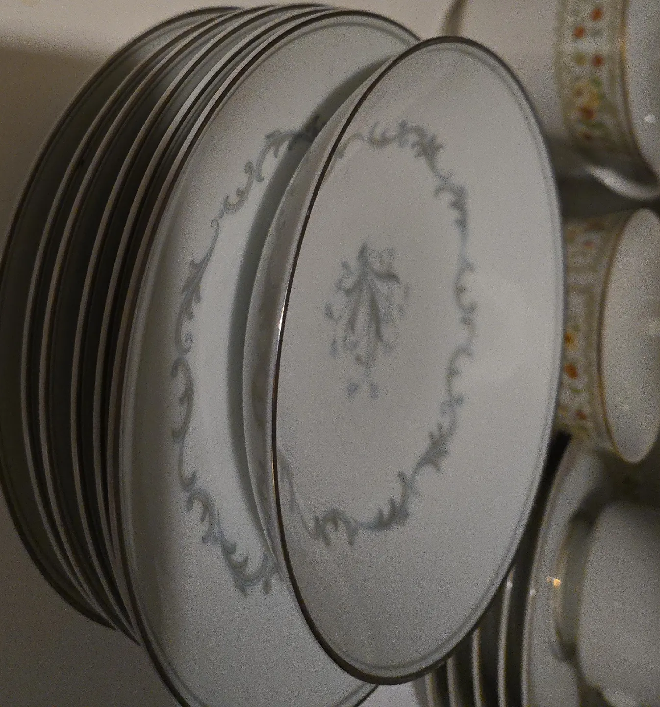 Selling a beautiful Noritake Chaumont china 6 plates features a delicate floral and scroll design with a gold trim. Perfect for adding a touch of elegance to your dining experience! The pattern number is 6008.