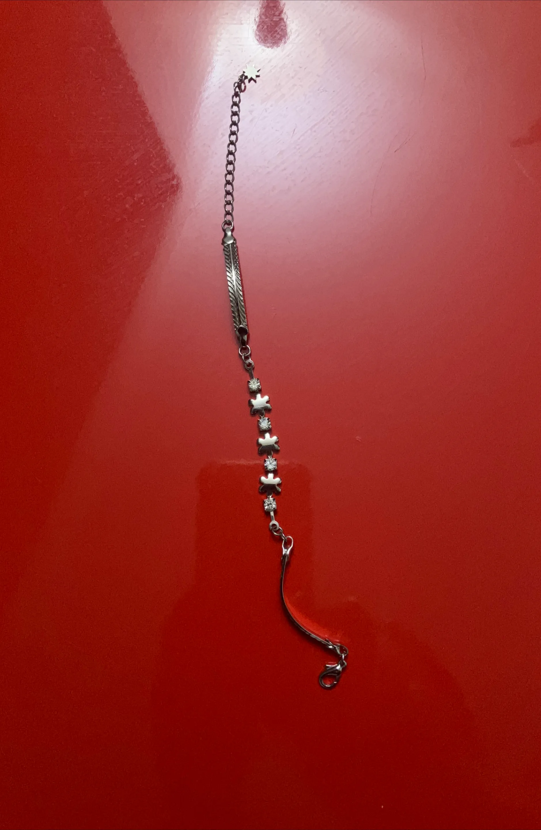 Selling a cute silver bracelet! It features a star detail at the end of the chain and little rhinestone accents along the length of the bracelet. It's in great condition and ready for a new home