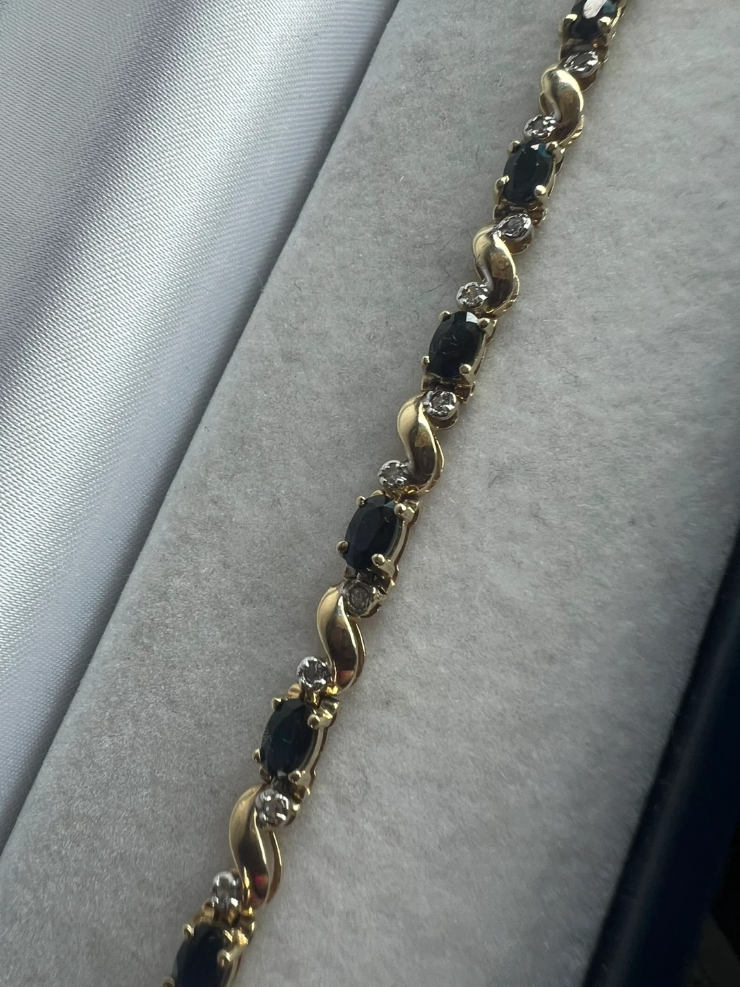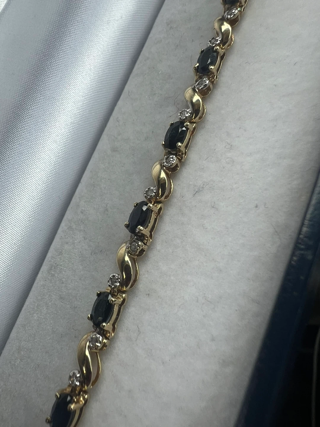 Selling a lovely 10 k yellow yellow gold bracelet featuring sapphires and diamonds . It's in great condition and would make a beautiful addition to any jewelry collection New condition