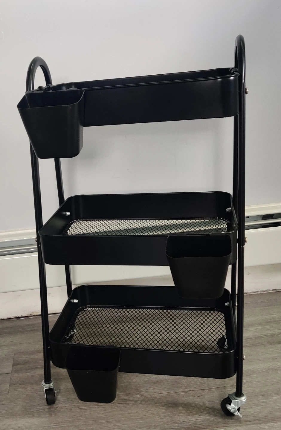 Black 3-Tier Rolling Storage Cart with Bins