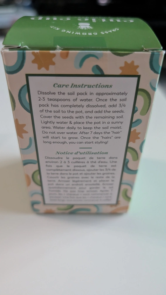 Grow your own little patch of grass with this Cutie Cup kit! It's brand new and comes with everything you need to get started. Just add water and watch it grow in about 7 days. The box includes care instructions in both English and French. This cute penguin design is sure to brighten up any space! Originally $8.99 at Indigo.