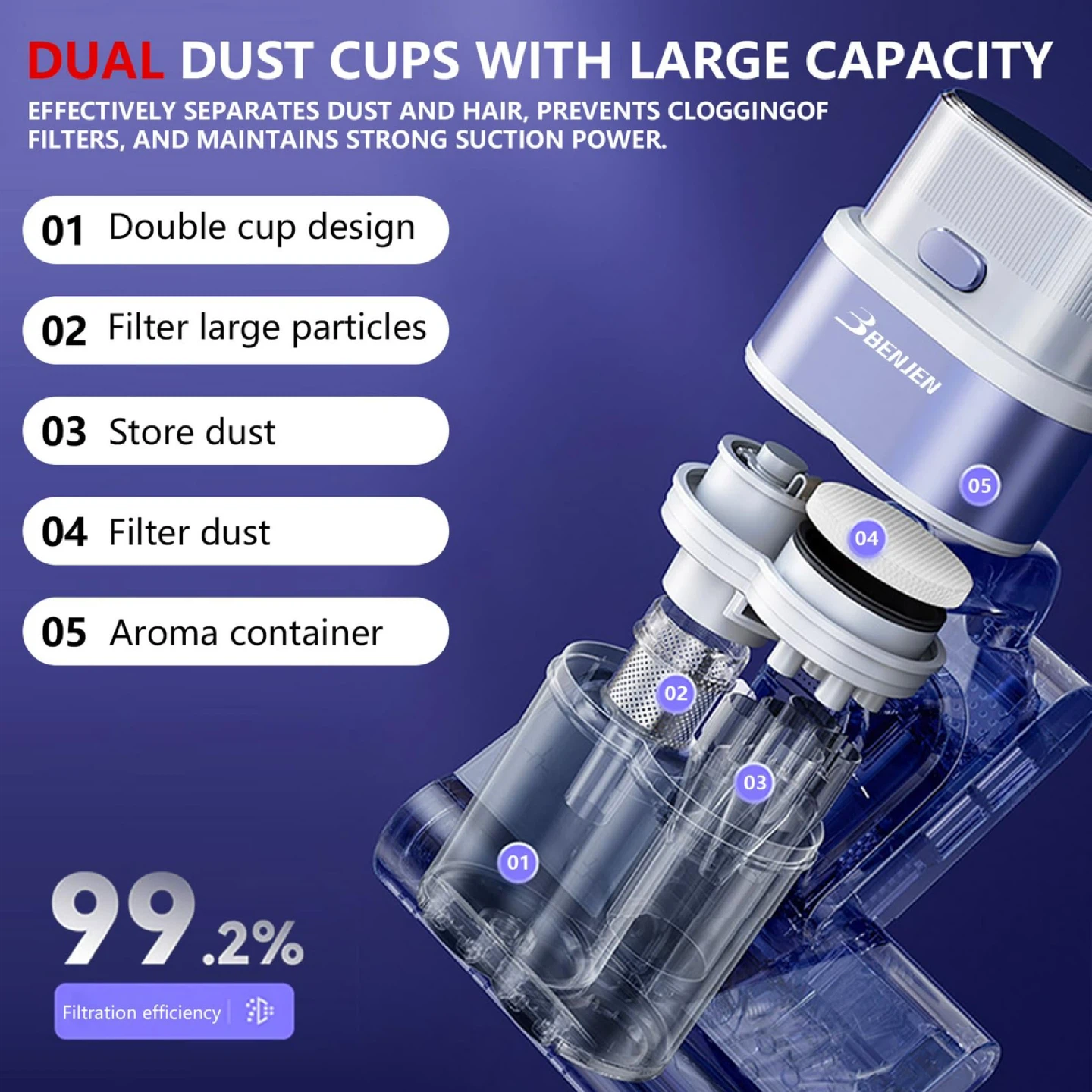 16Kpa Suction, Ultrasoni, 500W Powerful, High HeatingTech Double-Cup Handheld Vacuums for Dust & Pet Hair, Corded