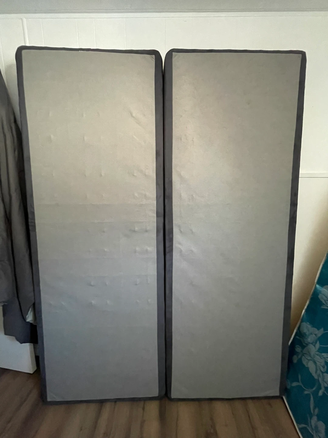 472Selling a split Queen size mattress box spring. It comes in two halves (not attached together) which fit under a standard size Queen mattress. Excellent condition, no damages! It has a velvety soft grey outer lining. The height is 5 inches. I am unsure of the brand but these types of box springs retail for over $200 new.