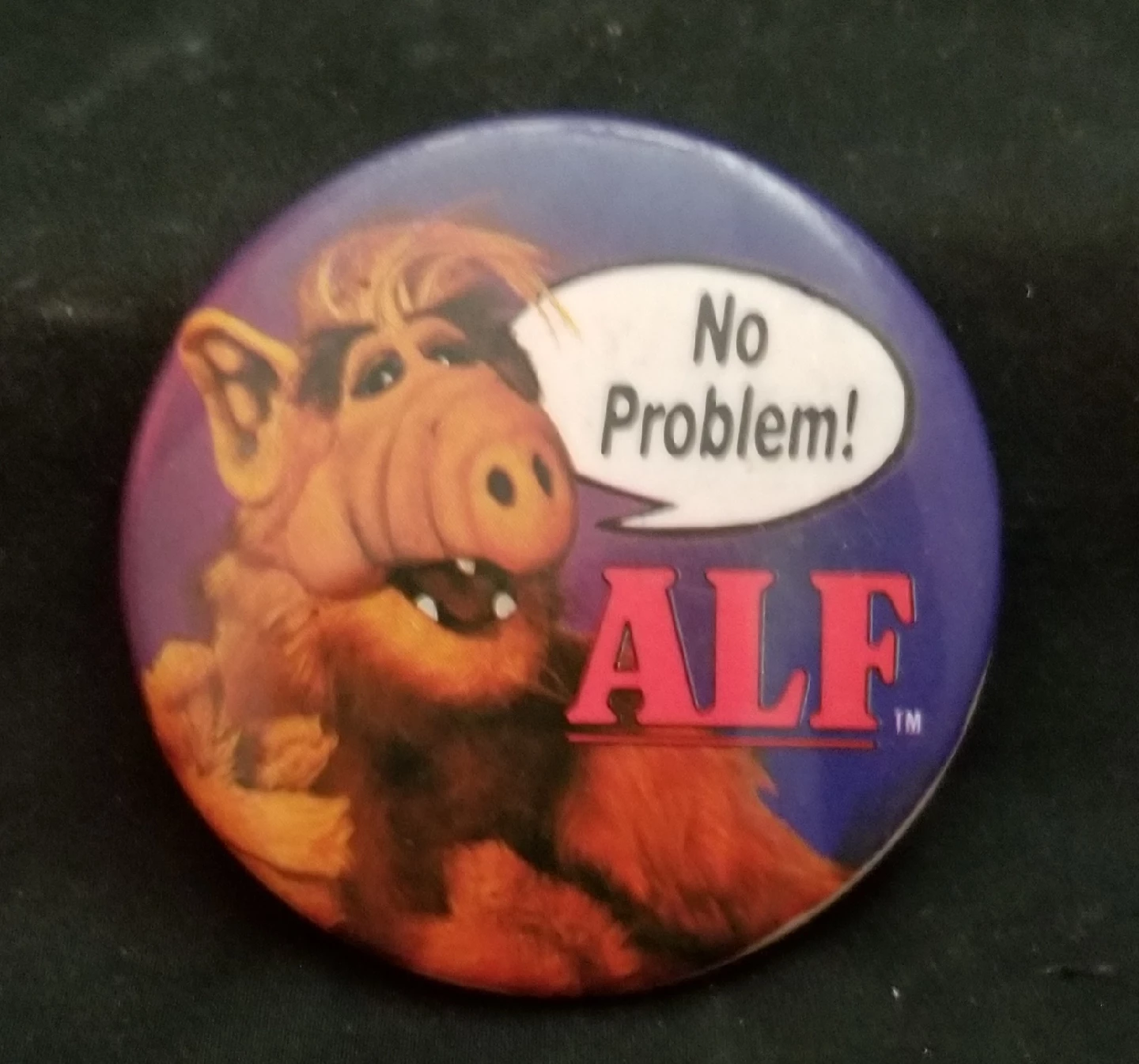 Selling a vintage ALF pinback button! It features ALF with the phrase "No Problem!" on a blue background. A fun collectible for any ALF fan!