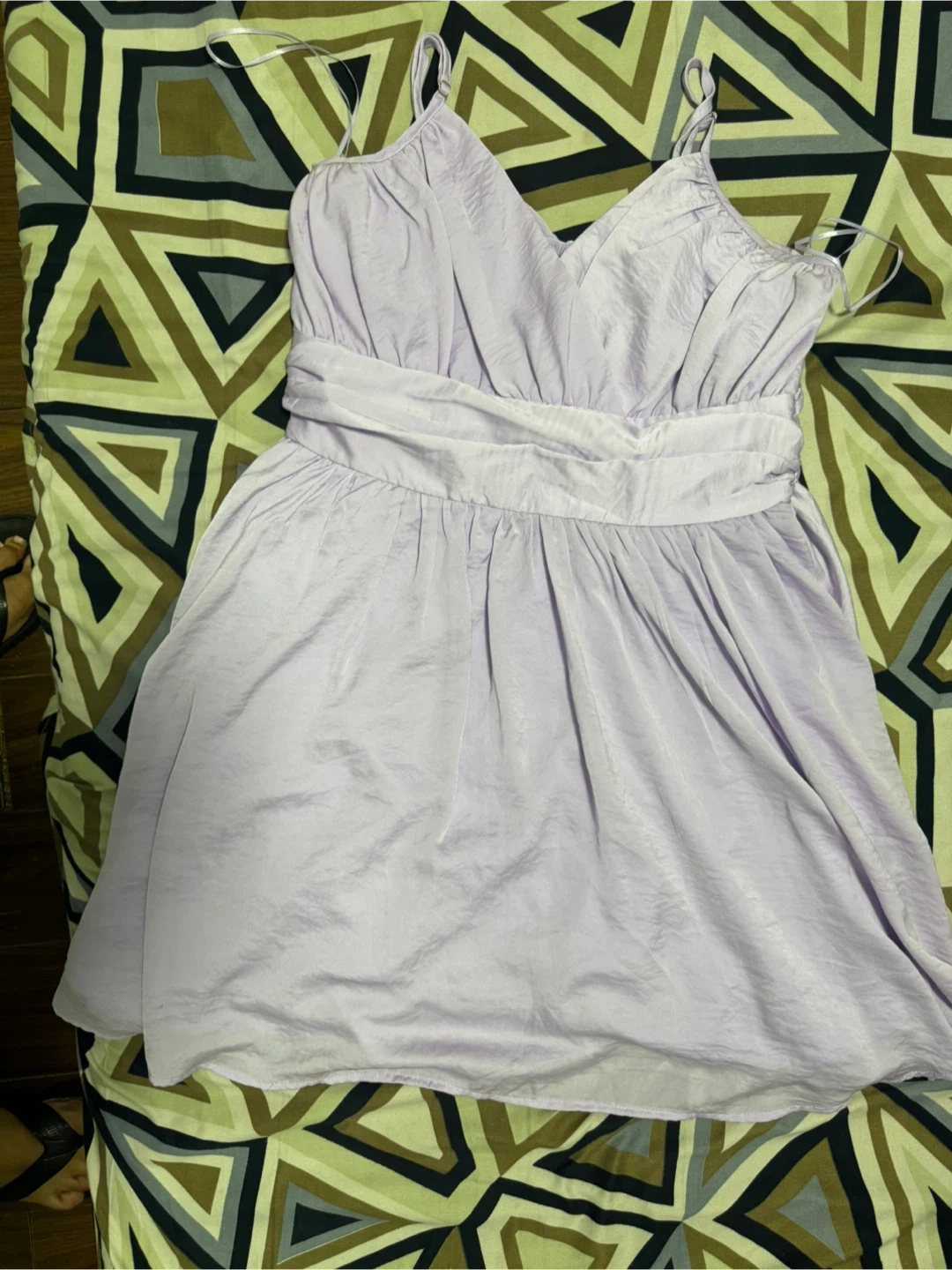 Selling a cute purple mini dress! It's in great condition and perfect for summer. The material is lightweight and comfortable, making it ideal for warm weather. Feel free to message me with any questions!