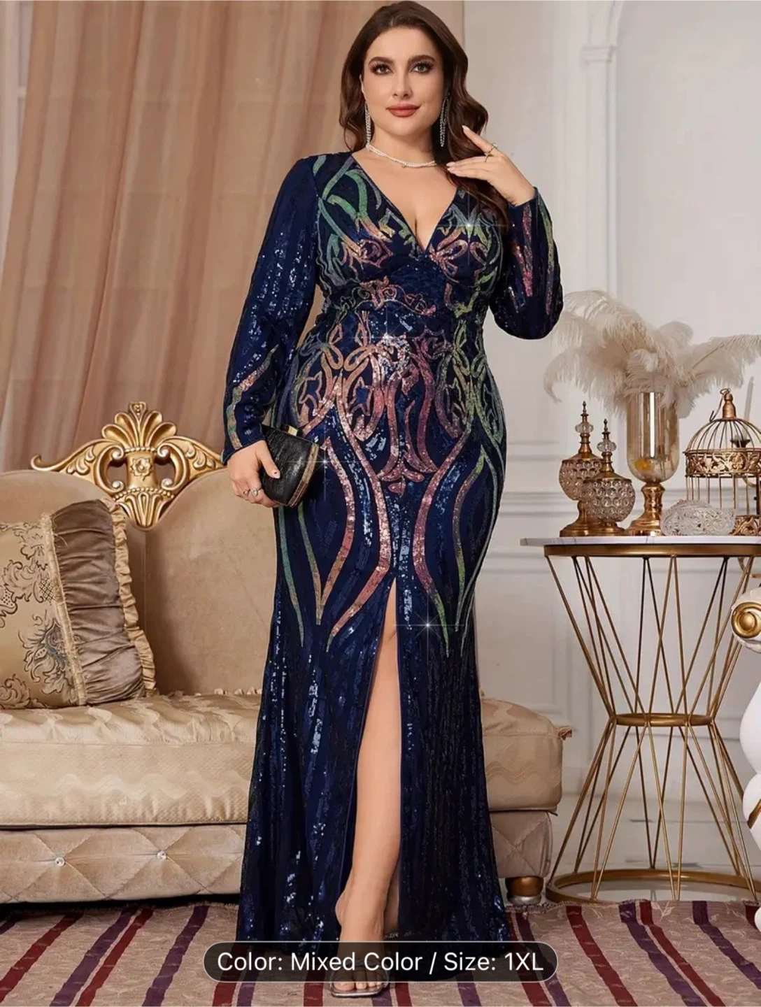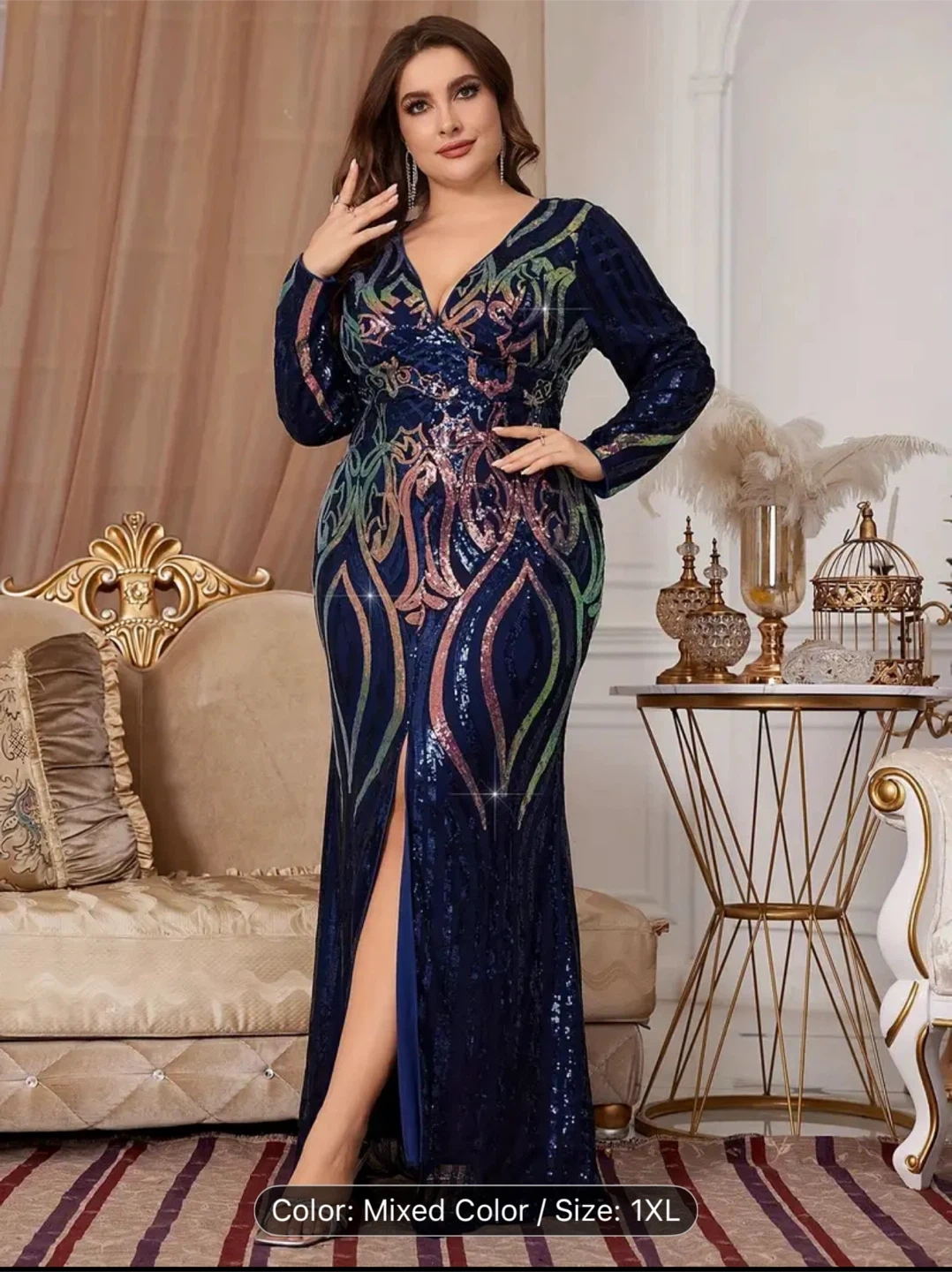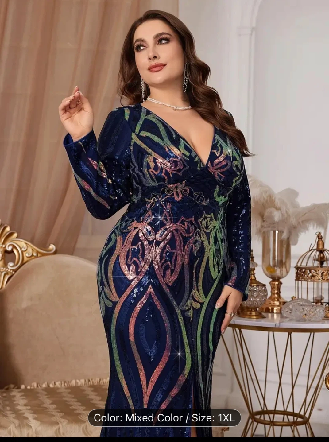 Gorgeous sparkly maxi dress in a size 1XL. It's a mixed colour with a flattering silhouette. Perfect for a special occasion or a night out!