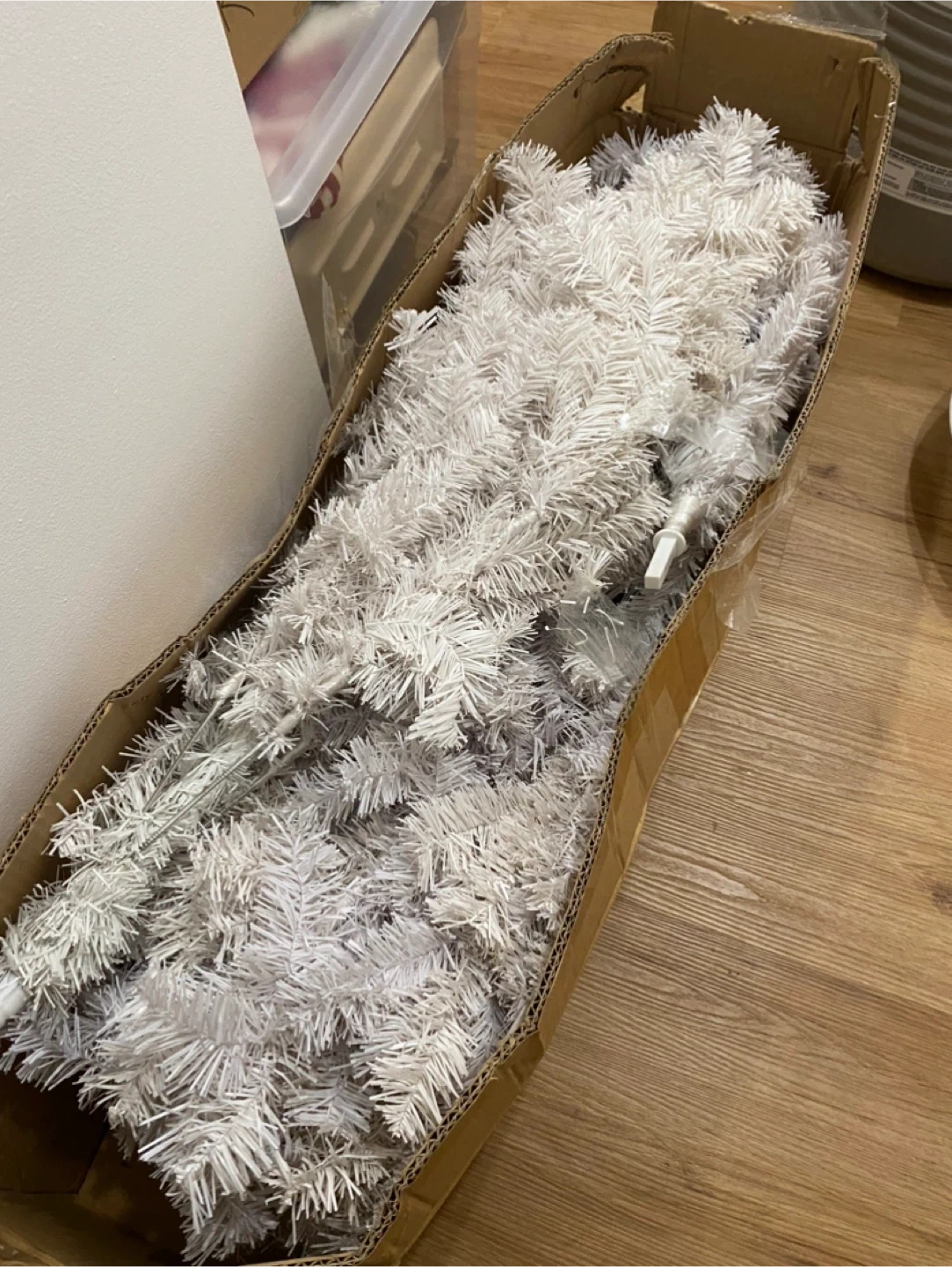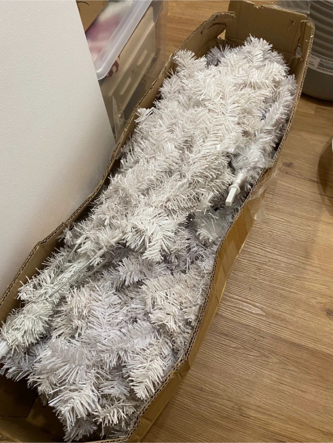 1000+Get ready for the holidays with this beautiful 6ft white artificial Christmas tree! It comes complete with a box for easy storage. Perfect for adding a touch of winter wonderland to your home!☺️