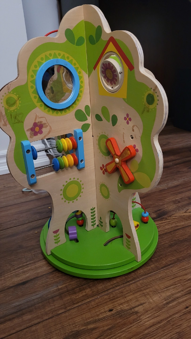 This is a fun wooden tree activity center! NO PLASTIC!