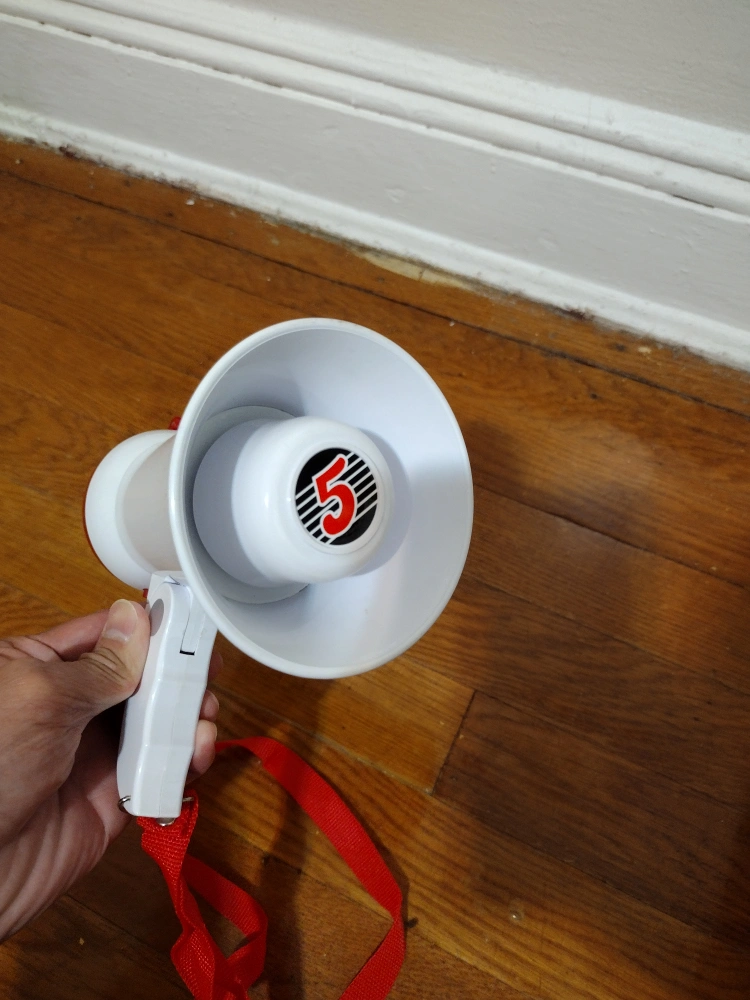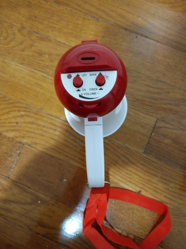 Selling a 5 Below megaphone in red and white! It has a siren function and adjustable volume. Great for events or just having fun!