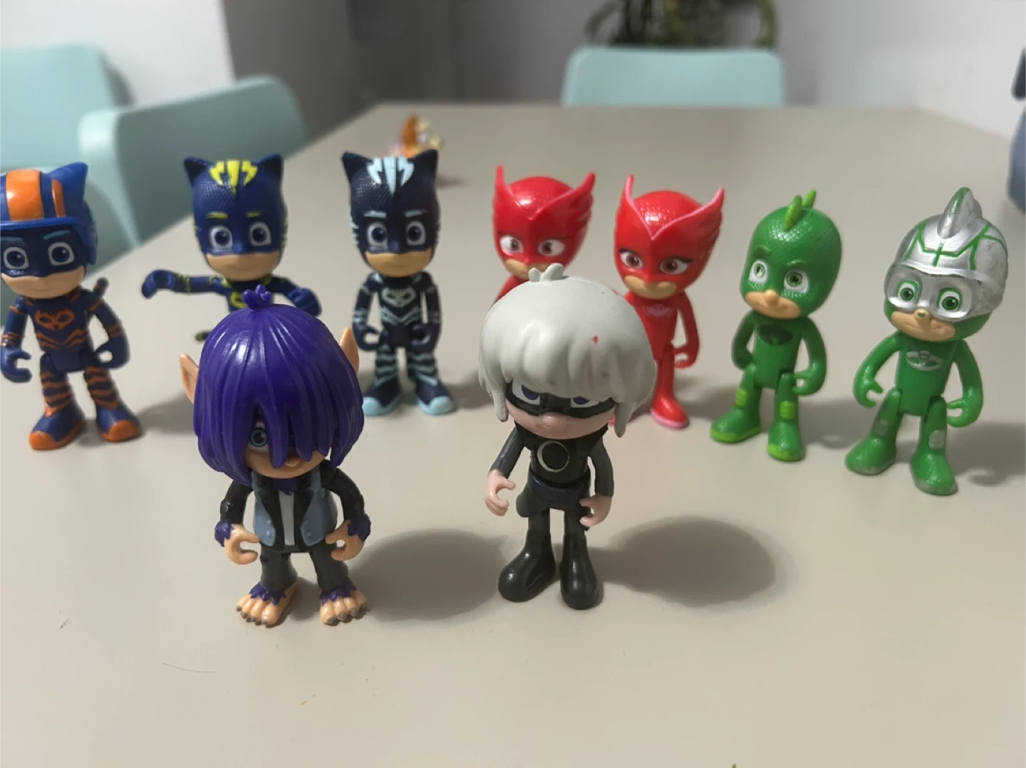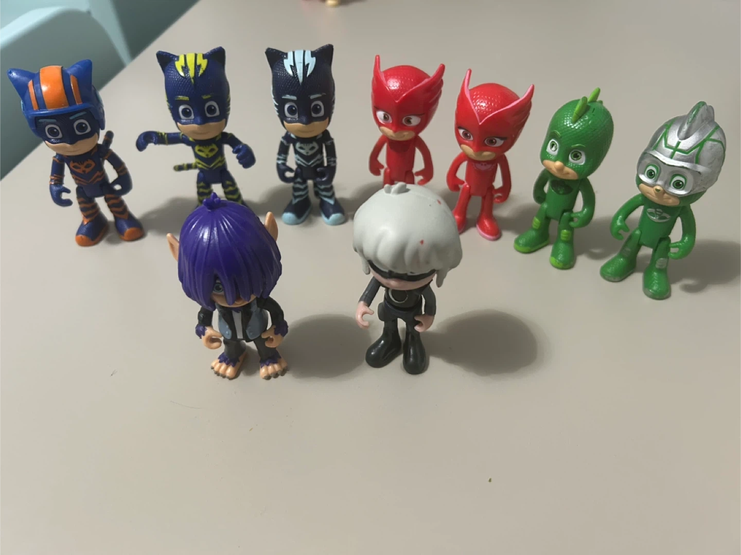 I'm selling a set of PJ Masks action figures! This set includes Owlette, Catboy, Gekko, Romeo, Luna Girl, and more. They are in good condition and ready for a new home!