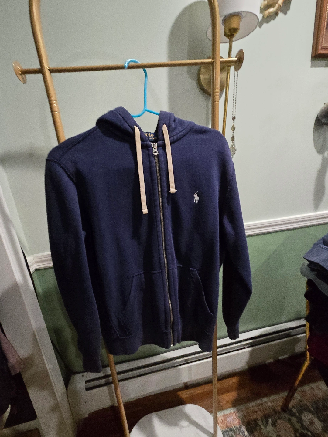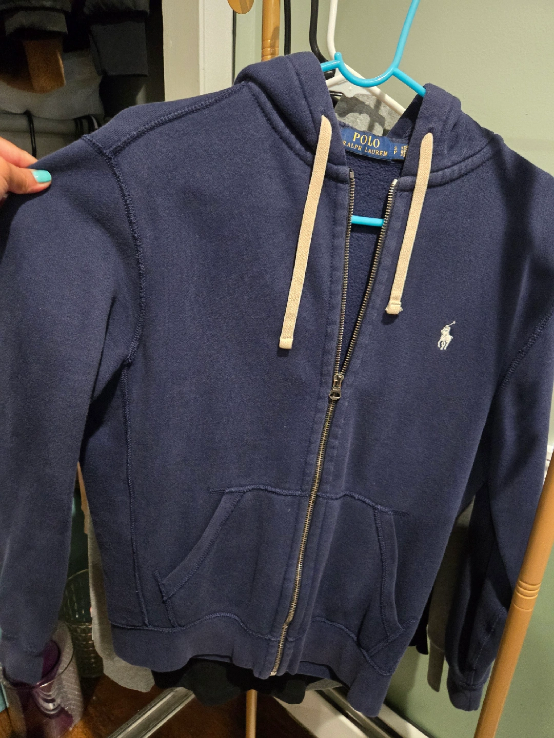 I'm selling a Ralph Lauren Polo full zip hoodie in navy blue. It's in great condition and ready for a new home! Perfect for layering or wearing on its own.